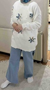 Kadın Tül Çiçek Detaylı Taşlı Triko Tunik - AVSARWEAR Kadın Tül Çiçek Detaylı Taşlı Triko Tunik - AVSARWEAR AVS-ENZ240T Standart