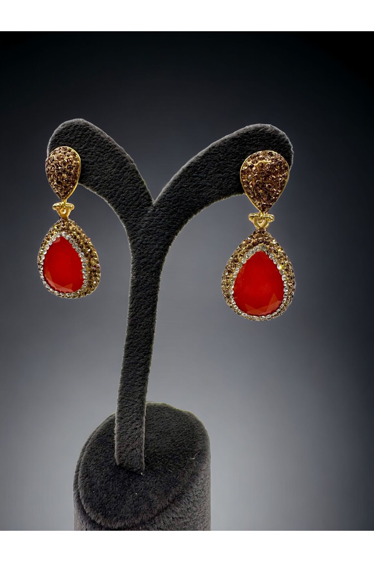 Gold Detay Kahverengi Turuncu Hareli Görünüm Sallantılı Küpe Gold Detay Kahverengi Turuncu Hareli Görünüm Sallantılı Küpe KUPNUR00000232 تک سایز