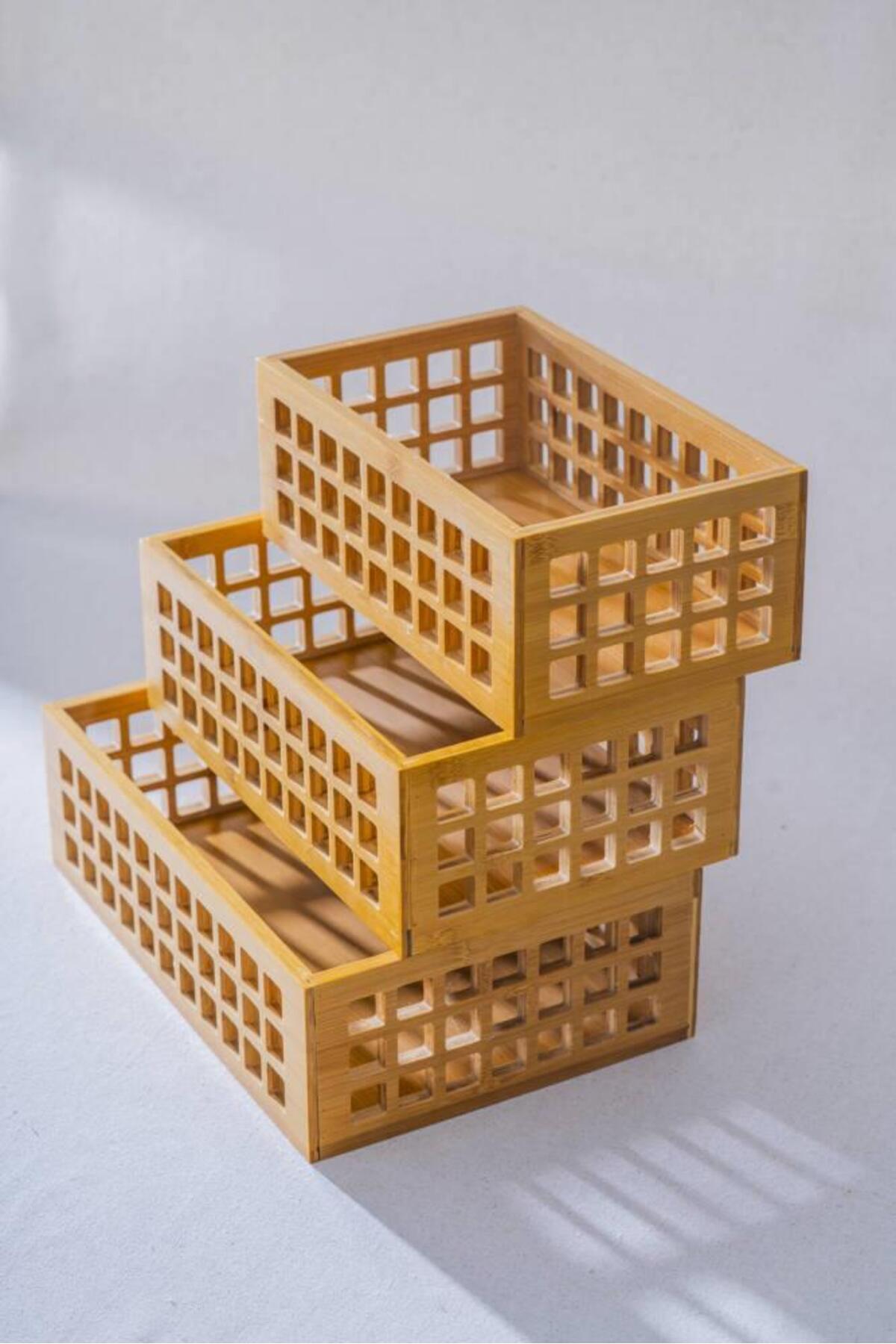 3'lü Bambu Kafes Çok Amaçlı Sepet- Organizer 3'lü Bambu Kafes Çok Amaçlı Sepet- Organizer MRP-KBR-1-1-211118 تک سایز