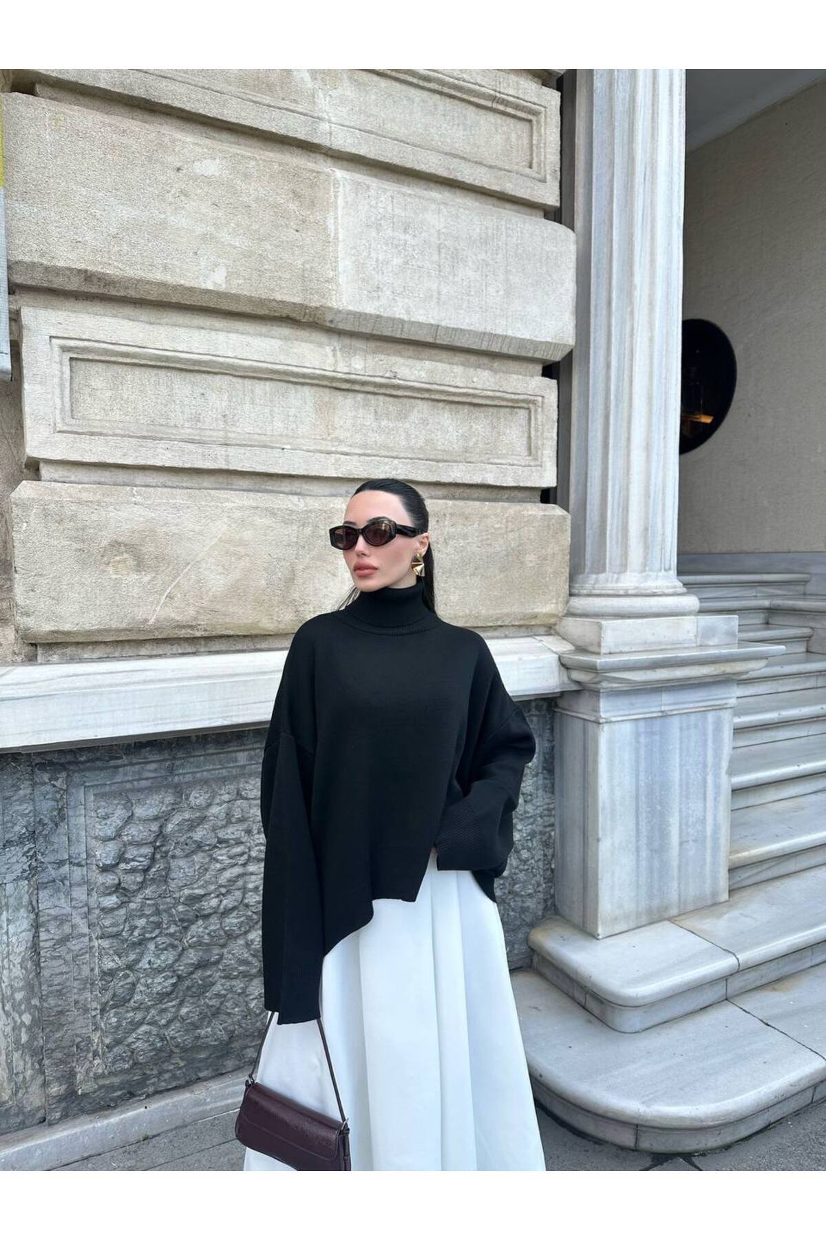 Lacivert Balıkçı Yaka Dikiş Detaylı Kazak Lacivert Balıkçı Yaka Dikiş Detaylı Kazak Standart