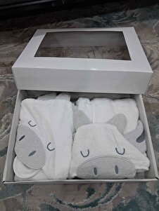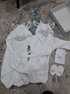 %100 Pamuk Kutulu Hediye Yenidoğan/bebek Bornoz Seti 4 Parça / Inek %100 Pamuk Kutulu Hediye Yenidoğan/bebek Bornoz Seti 4 Parça / Inek ÇS 1-2 Yaş