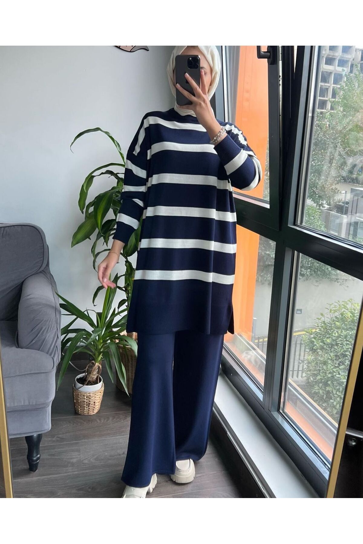 Kadın Yaka Fermuarlı Çizgili Triko Takım Kadın Yaka Fermuarlı Çizgili Triko Takım frm-44 Standart