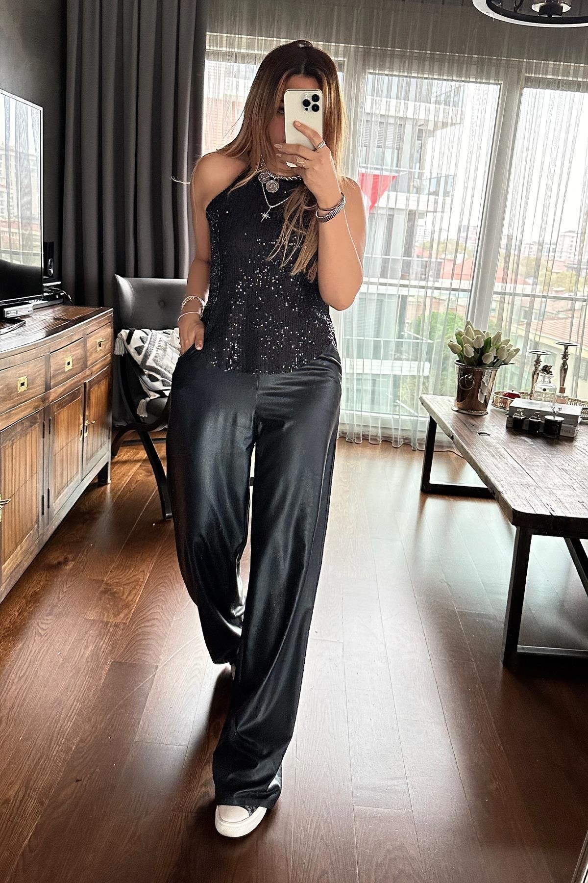 Payetli Reglan Yaka Bluz Siyah Payetli Reglan Yaka Bluz Siyah ReglanPay 42