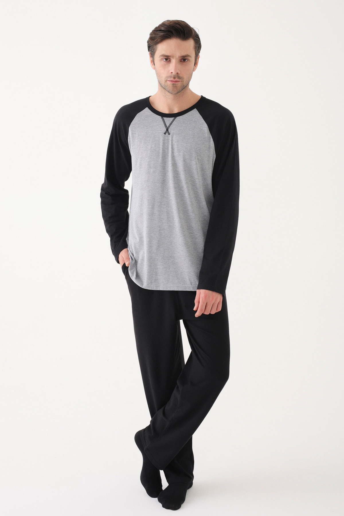 Erkek Pamuklu Uzun Kollu Cepli Pijama Takımı Erkek Pamuklu Uzun Kollu Cepli Pijama Takımı KE30110 2XL