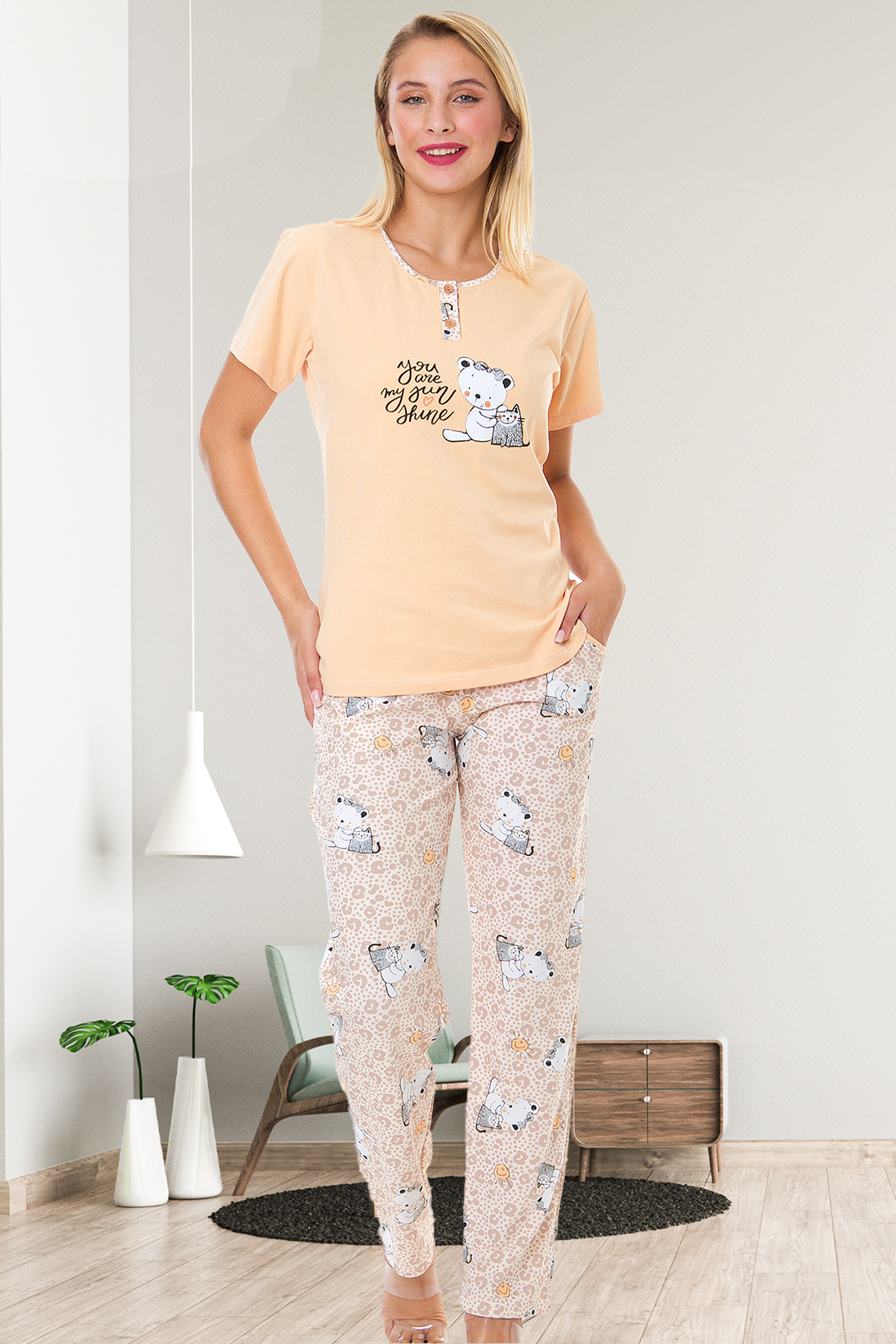 Pamuklu Uzun Kollu Kadın Pijama Takımı Pamuklu Uzun Kollu Kadın Pijama Takımı 1578 XL