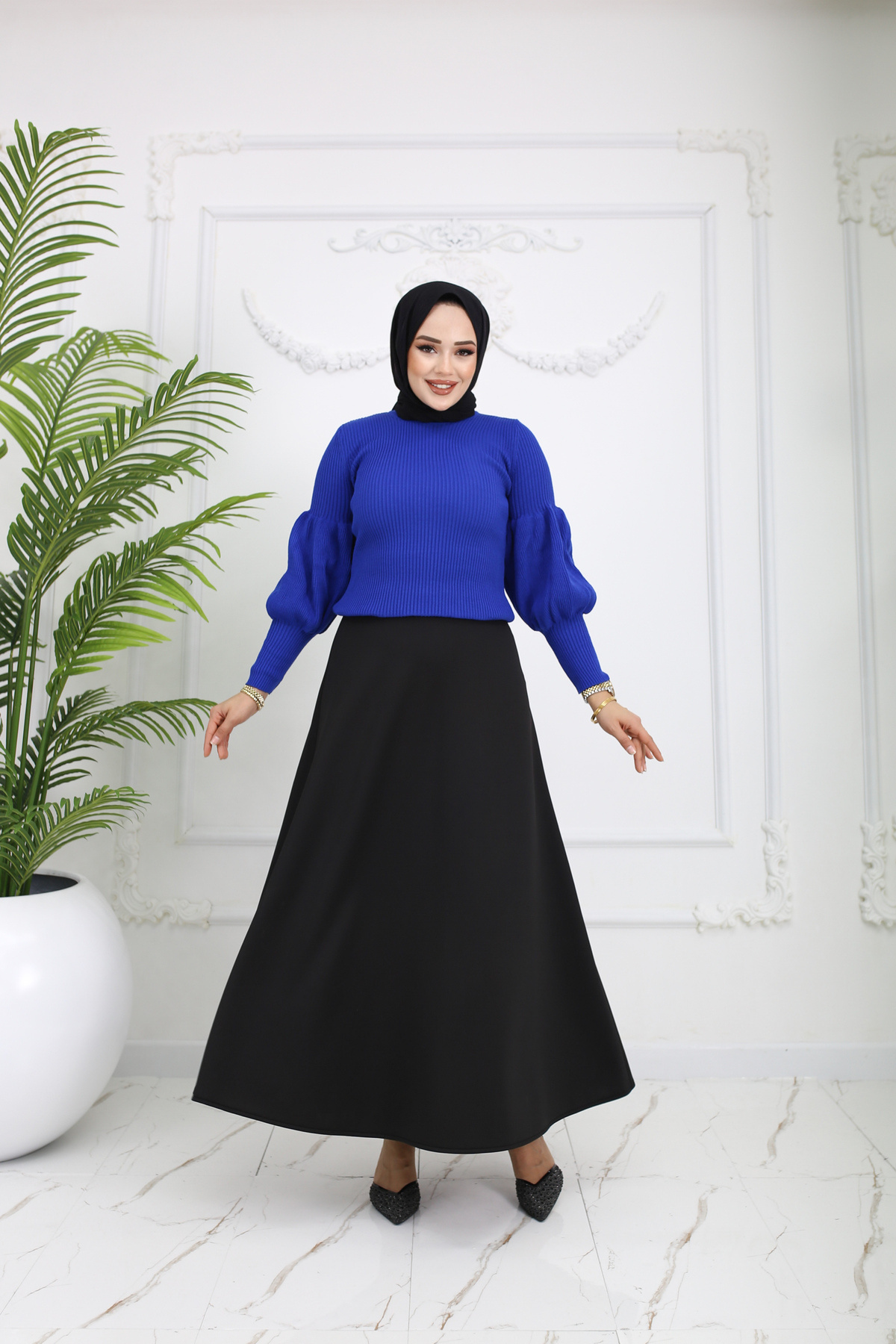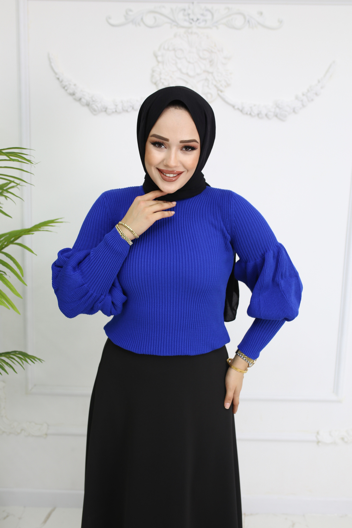 Balon Kol Detaylı Triko Kazak Badi Saks Balon Kol Detaylı Triko Kazak Badi Saks ALL4750 Standart