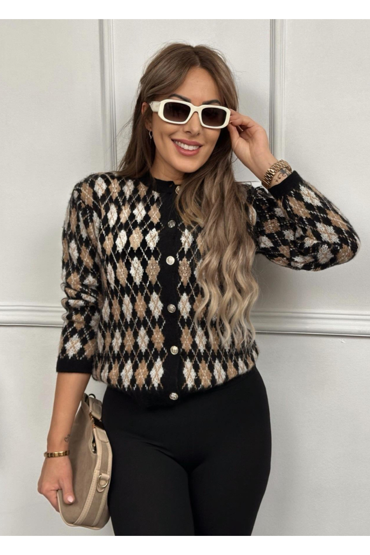 Gri Baklava Desenli Gold Düğmeli Hırka Gri Baklava Desenli Gold Düğmeli Hırka 23030 Standart