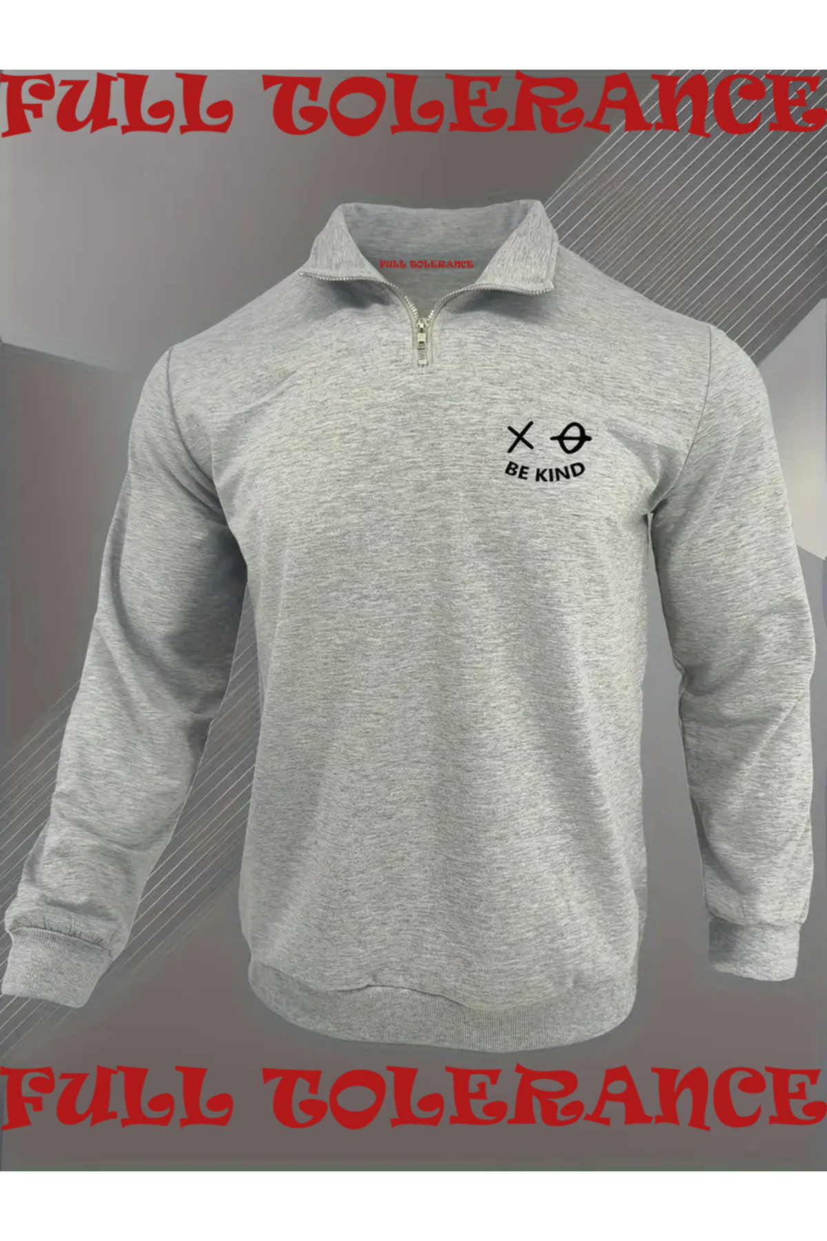 BE KIND Neşeli Yüz Baskılı Erkek Fermuarlı Yaka Sweatshirt BE KIND Neşeli Yüz Baskılı Erkek Fermuarlı Yaka Sweatshirt BEKINDSMİLE XL
