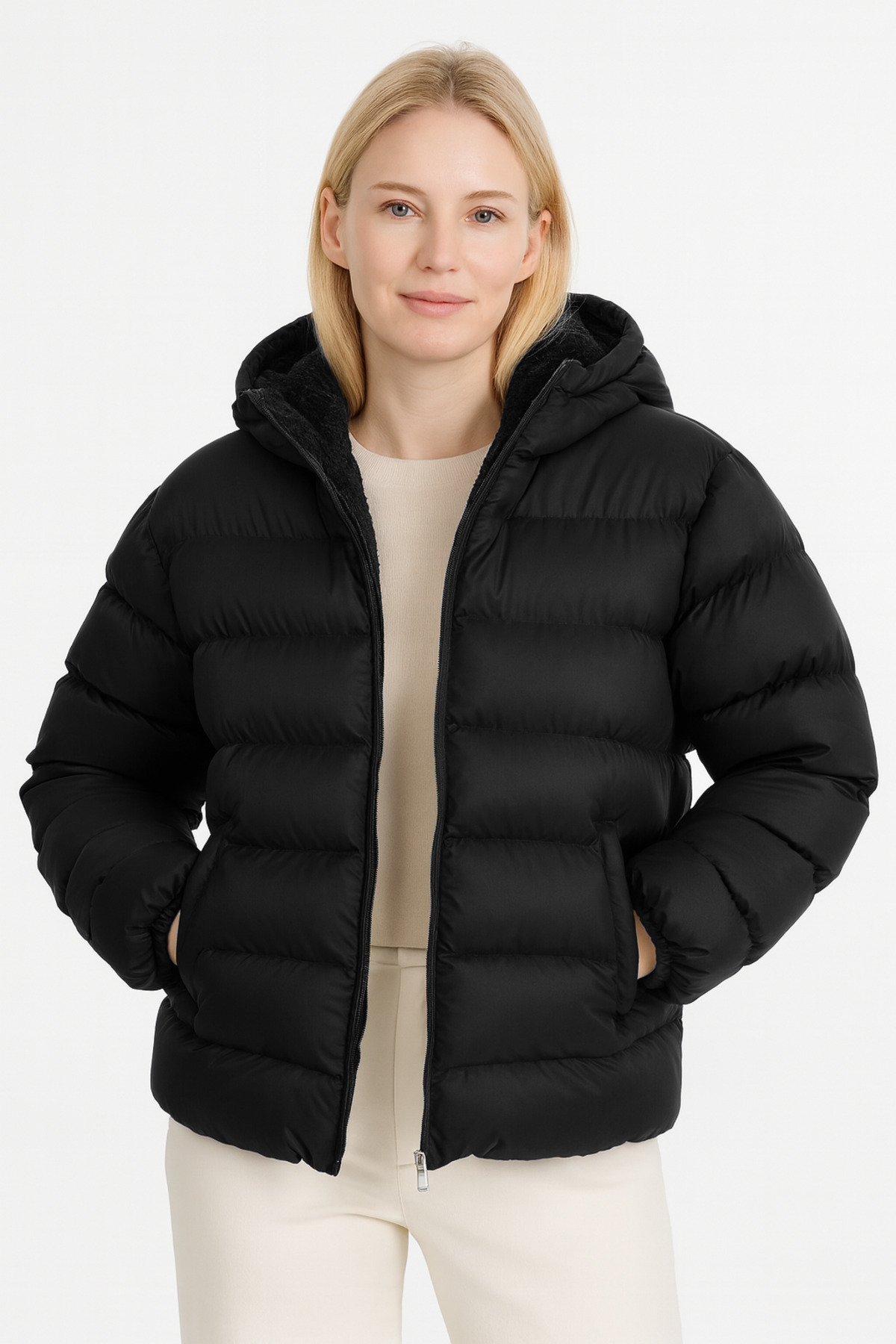 Siyah İçi Kürklü Kalın Su Geçirmez Kapişonlu Şişme Mont Siyah İçi Kürklü Kalın Su Geçirmez Kapişonlu Şişme Mont 8532 XL