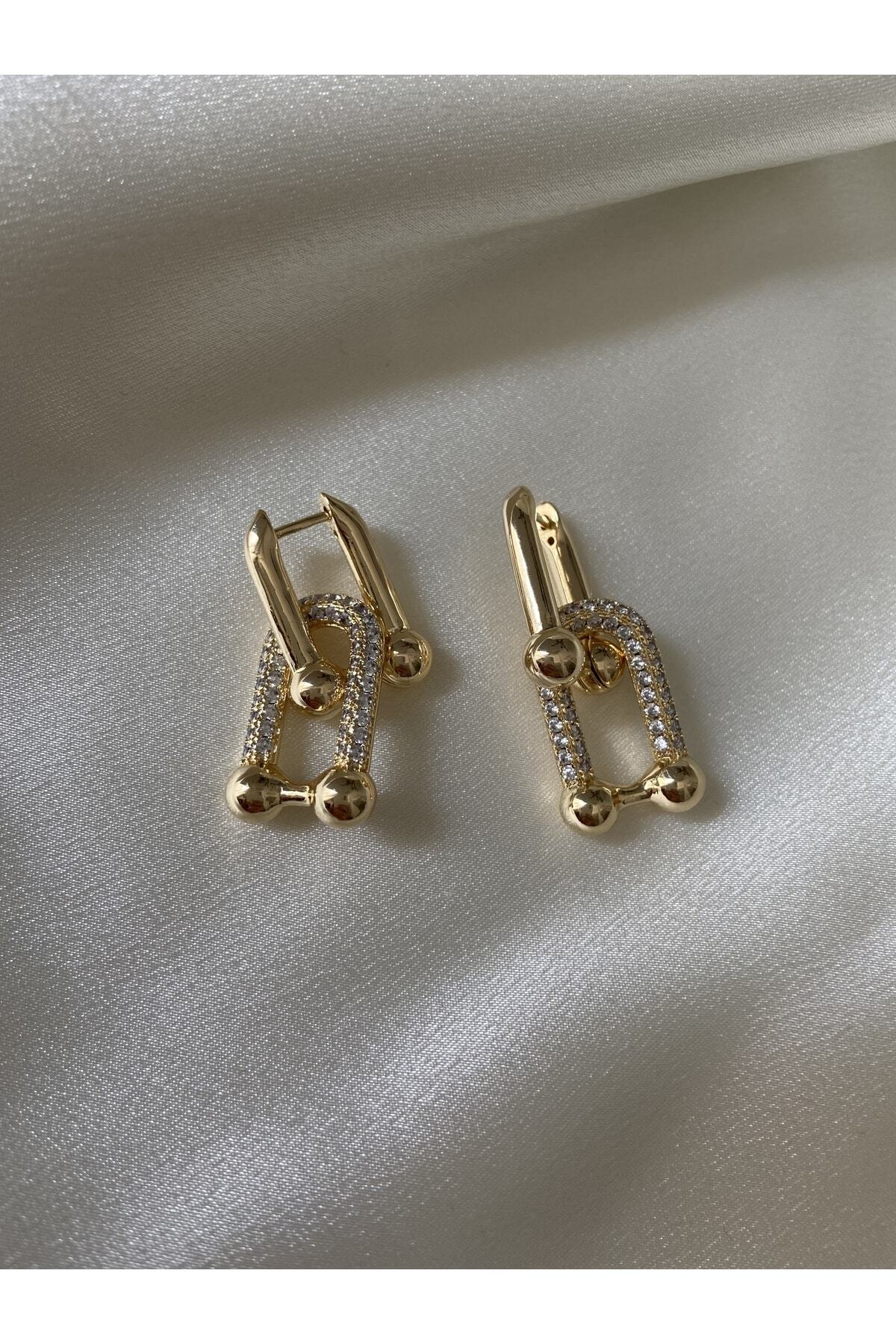 Zirkon Taşlı Gold Model Kadın Küpe - Gold Renk Zirkon Taşlı Gold Model Kadın Küpe - Gold Renk STS686836 تک سایز