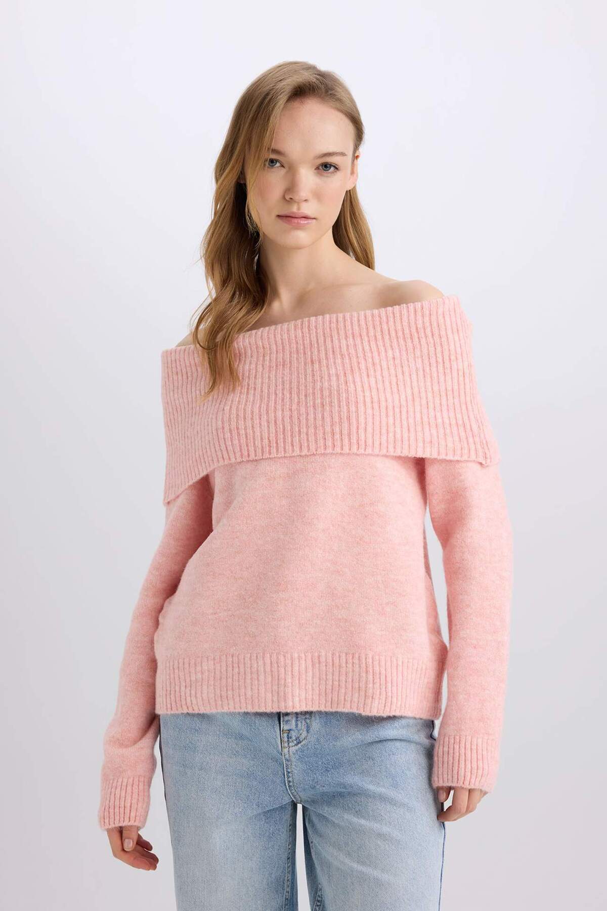 Regular Fit Açık Omuz Triko Kazak E4549AX24WN Regular Fit Açık Omuz Triko Kazak E4549AX24WN L