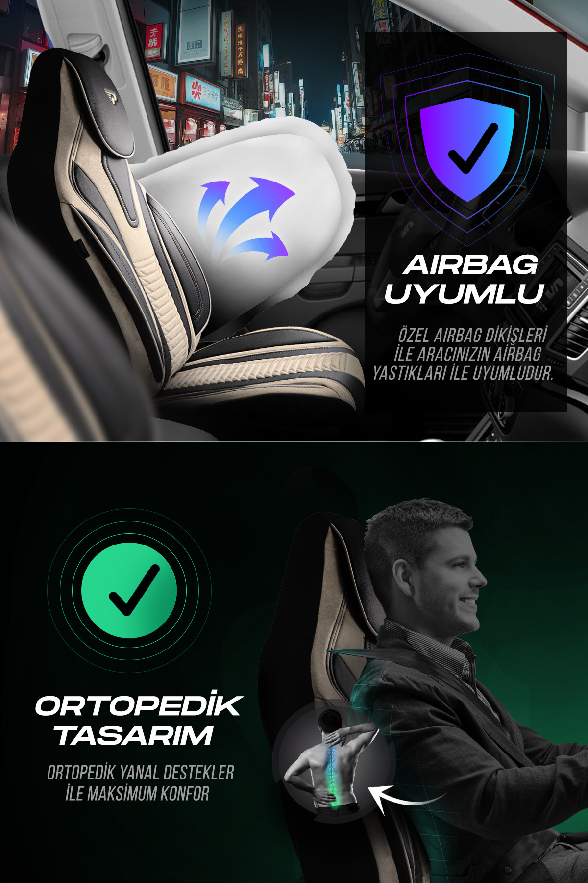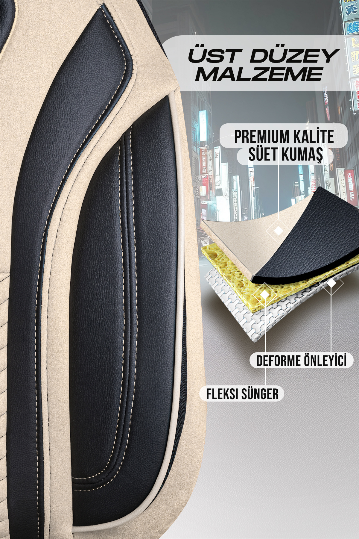 Panda Tokyo Serisi Süet Ve Deri Kumaş Lüks Oto Koltuk Kılıfı - Tam Set Panda Tokyo Serisi Süet Ve Deri Kumaş Lüks Oto Koltuk Kılıfı - Tam Set 1020.09 تک سایز