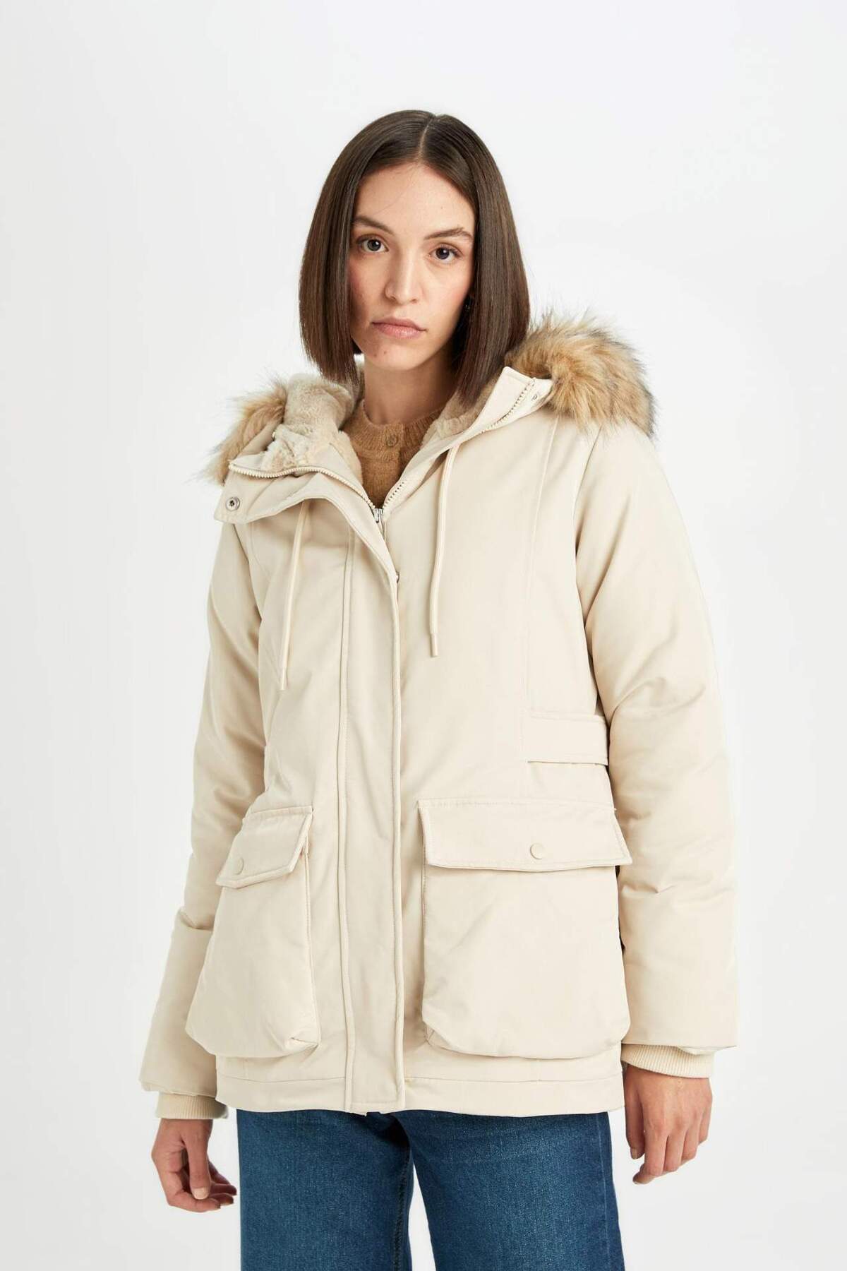 Suni Deri Kapşonlu Parka İçi Peluş Astarlı Cepli Rahat Kalıp Suni Deri Kapşonlu Parka İçi Peluş Astarlı Cepli Rahat Kalıp 5WAK00182EW 44