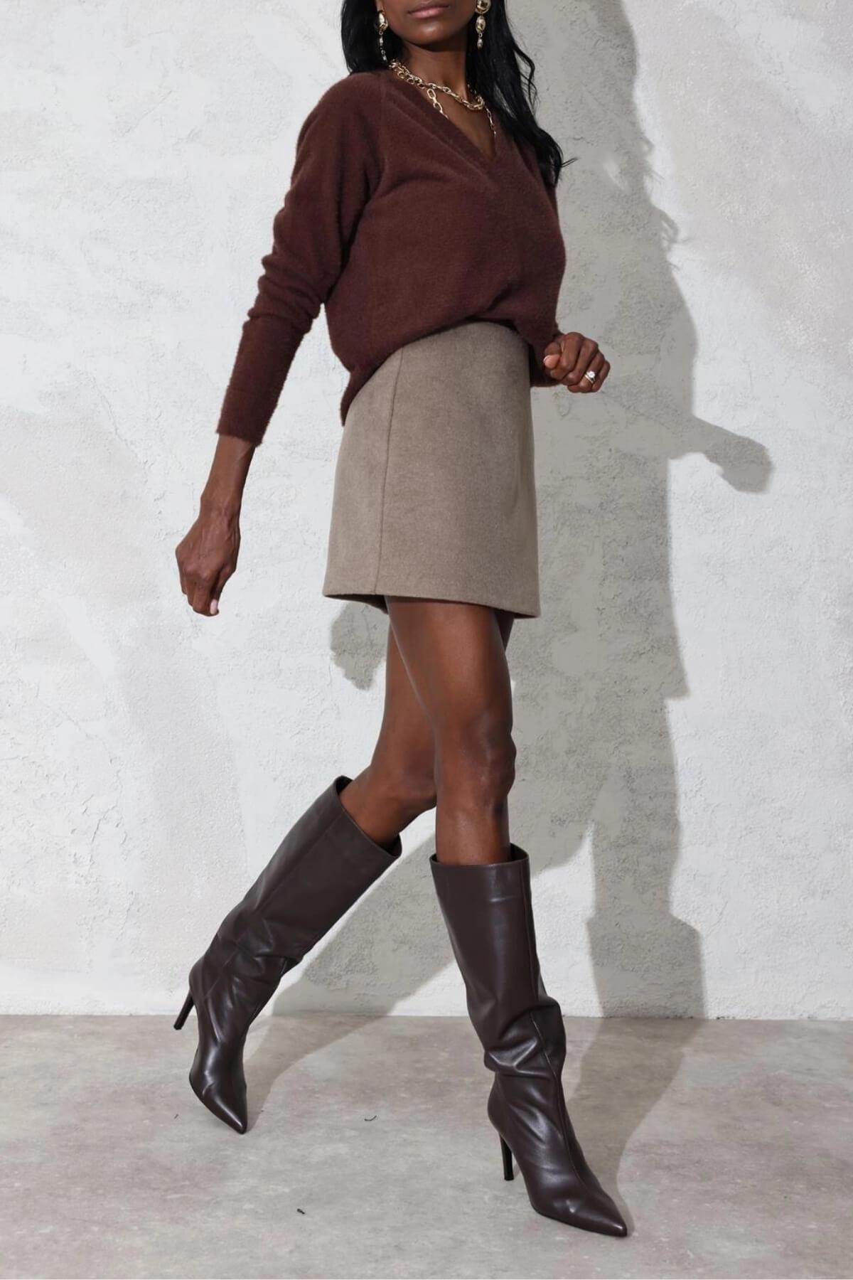 Kadın Premium Kalite Vizon Kaşe Mini Etek Kadın Premium Kalite Vizon Kaşe Mini Etek FK4530 L