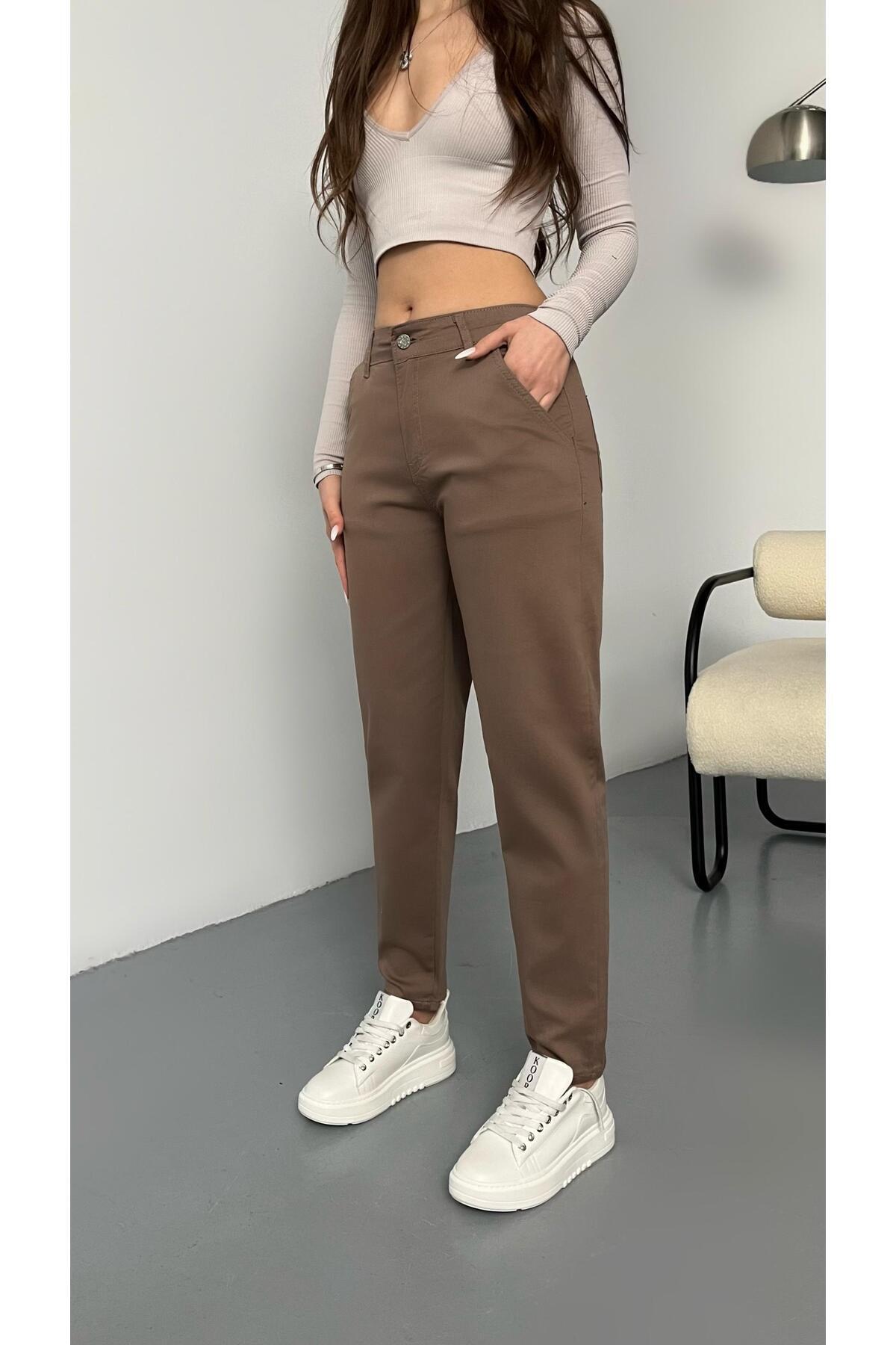 Kadın Model Yüksek Bel Kumaş Haki Pantolon Kadın Model Yüksek Bel Kumaş Haki Pantolon KRL5113T 42