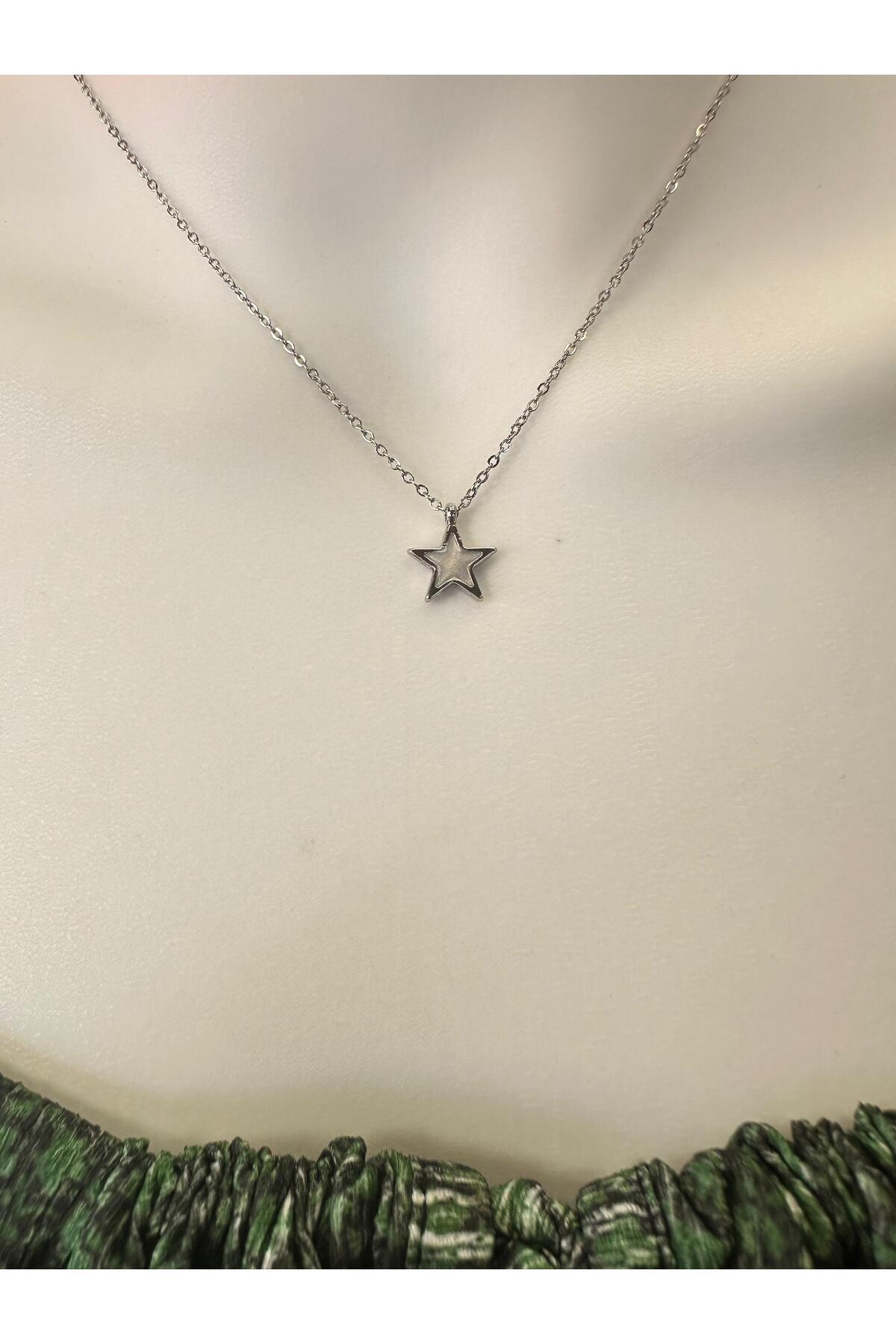 Zirkon Taşlı Büyük Yıldız Çelik Kolye Zirkon Taşlı Büyük Yıldız Çelik Kolye FZC305 45 cm