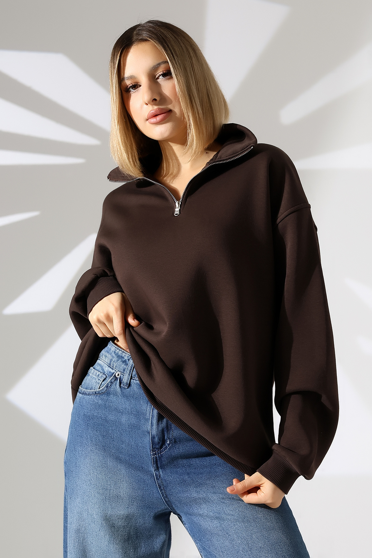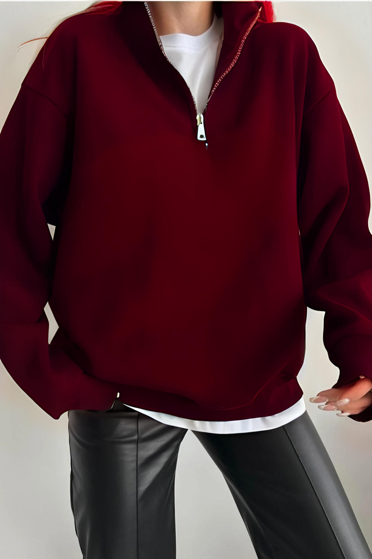 Şardonlu Yarım Fermuarlı Oversize Sweatshirt 21622 BORDO Şardonlu Yarım Fermuarlı Oversize Sweatshirt 21622 BORDO 103BK570002 XL