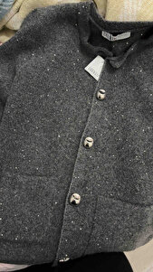 60935 Bisiklet Yaka Pullu Simli Düğmeli Triko Hırka-füme 60935 Bisiklet Yaka Pullu Simli Düğmeli Triko Hırka-füme DLVN-60935-HRK Standart
