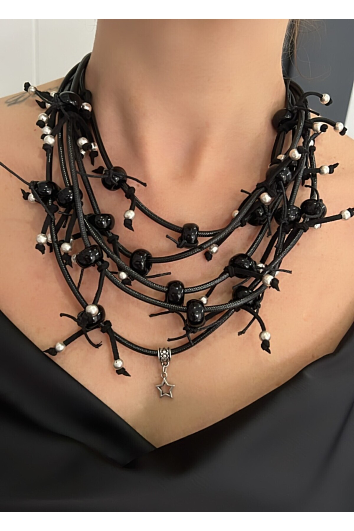 Özgün Tasarım Çoklu Kolye - Siyah & Gümüş Detaylı Özgün Tasarım Çoklu Kolye - Siyah & Gümüş Detaylı kutcha1101 تک سایز