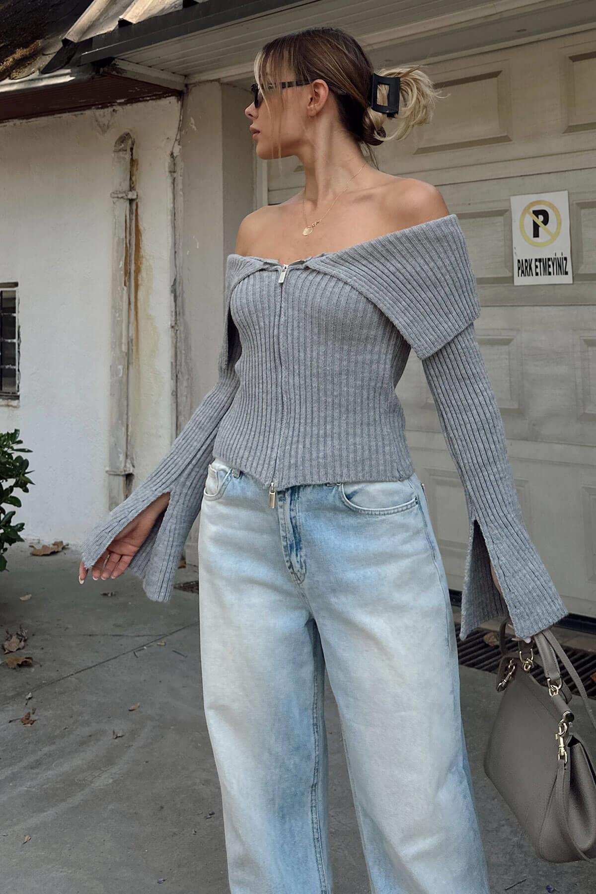 Siyah Adria Degaje Yaka Omzu Açık Kadın Triko Kazak Siyah Adria Degaje Yaka Omzu Açık Kadın Triko Kazak 26880 Standart