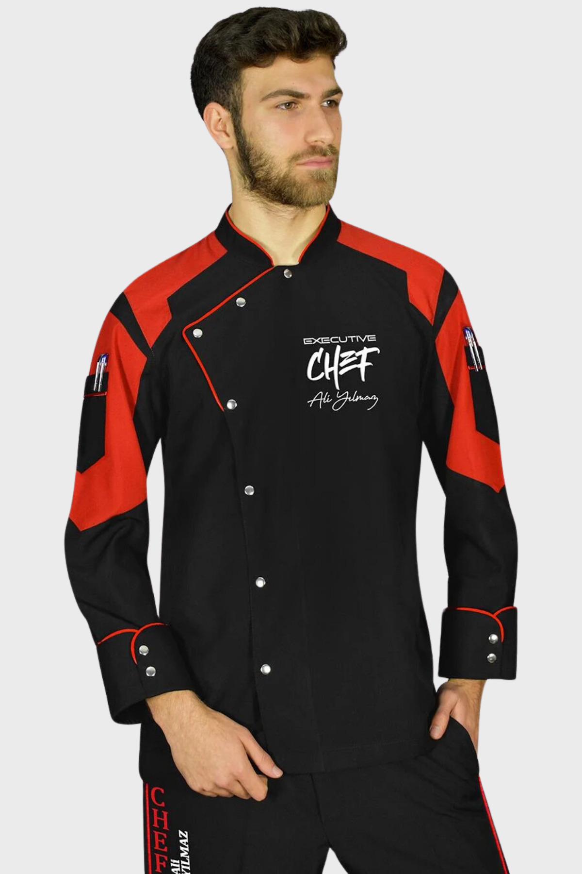 İsim Hediyeli Siyah Şef Ceketleri,Chef Aşçı Forması,Aşçı Elbisesi İsim Hediyeli Siyah Şef Ceketleri,Chef Aşçı Forması,Aşçı Elbisesi 1484 4XL