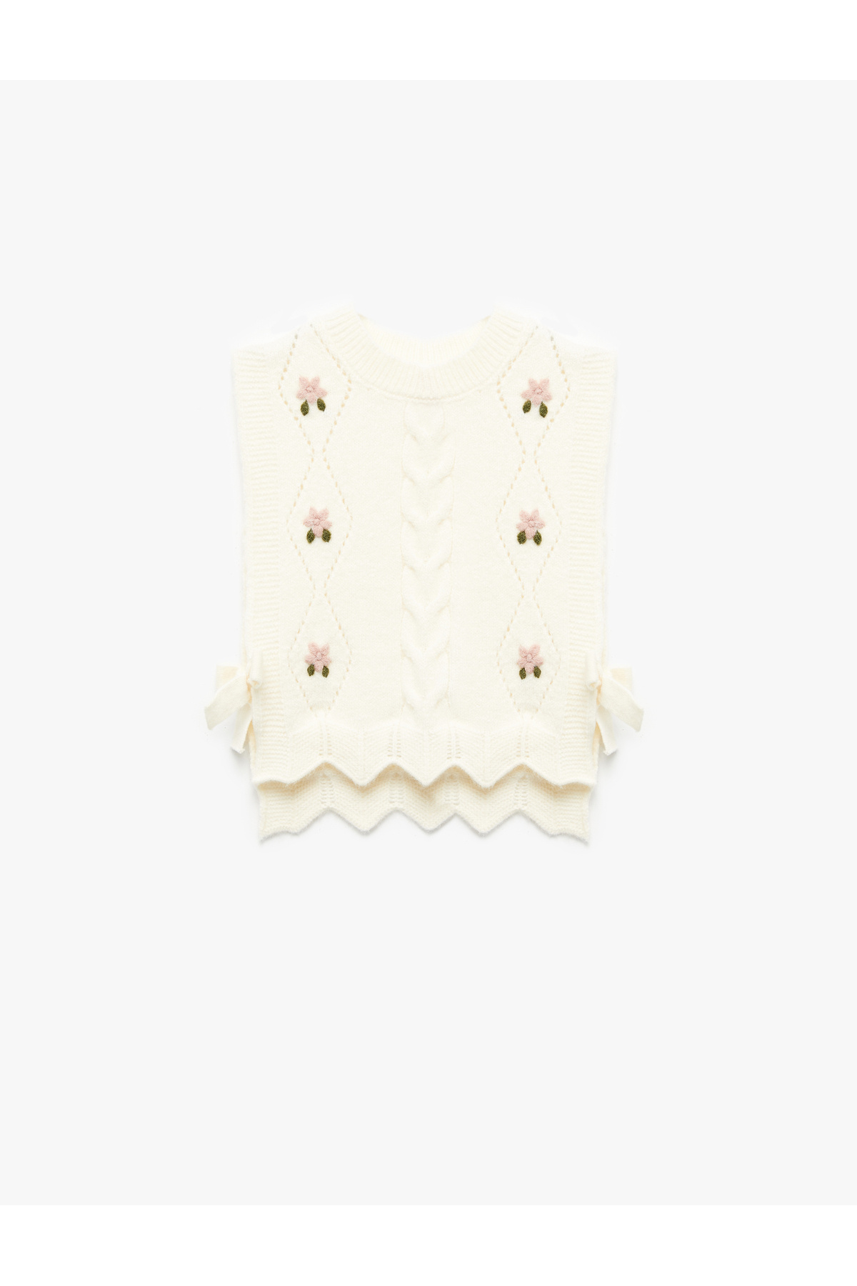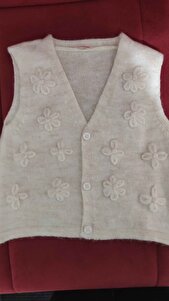 V Yaka Düğmeli Çiçek Detaylı Triko Yelek V Yaka Düğmeli Çiçek Detaylı Triko Yelek 5WMG90005HT 4-5 Yaş