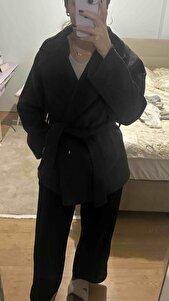 KADIN KUŞAKLI KRUVAZE KAŞE KABAN/PALTO KOYU ANTRASİT KADIN KUŞAKLI KRUVAZE KAŞE KABAN/PALTO KOYU ANTRASİT TYCXE3F7DN169962774133272 L