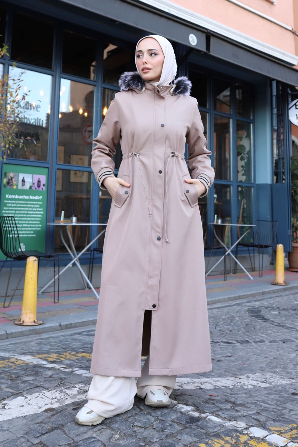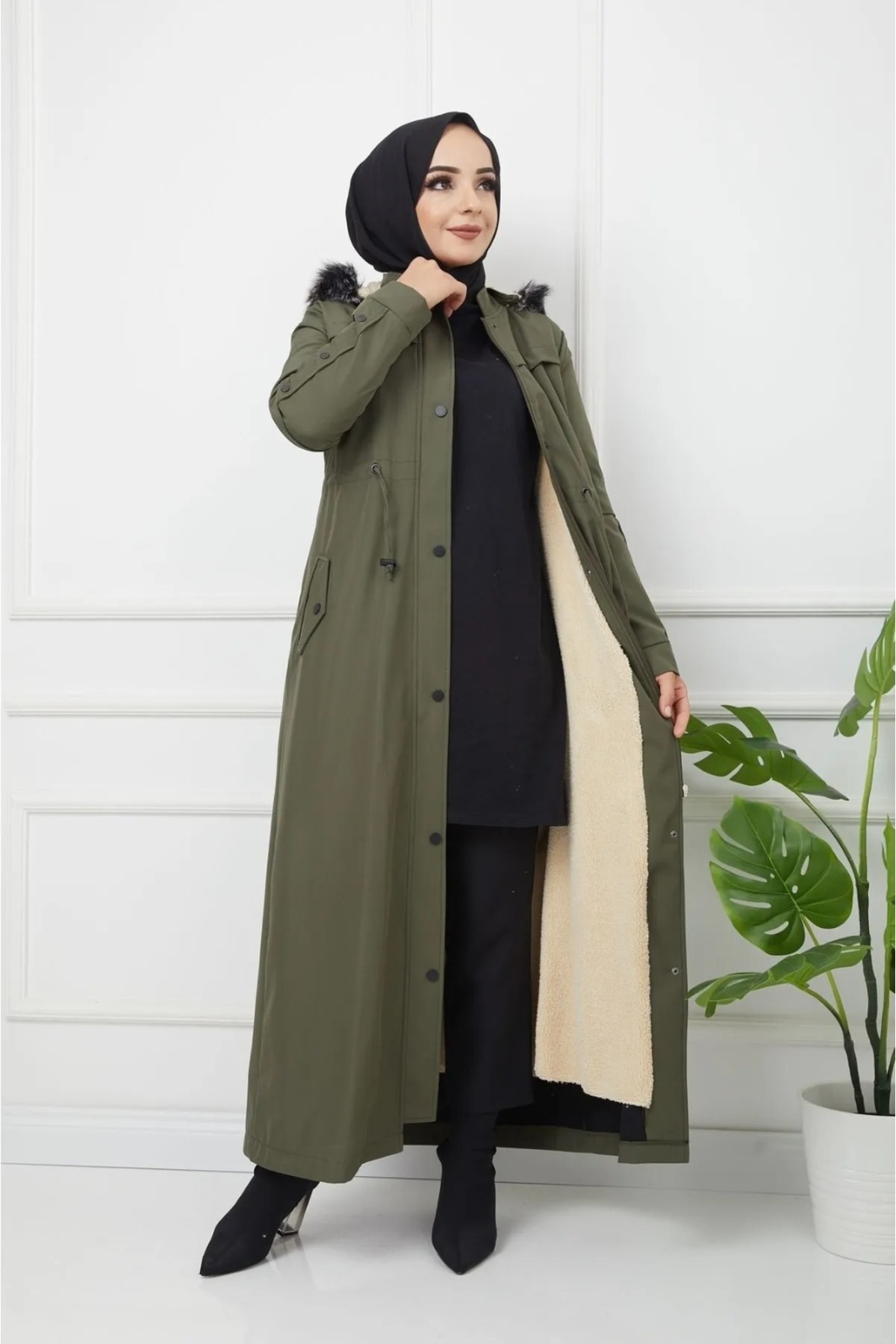Çıkarılabilir Kapüşonlu İçi Kürklü Kışlık Tam Boy Uzun Pardesü Mont Kaban Çıkarılabilir Kapüşonlu İçi Kürklü Kışlık Tam Boy Uzun Pardesü Mont Kaban KMK60 50