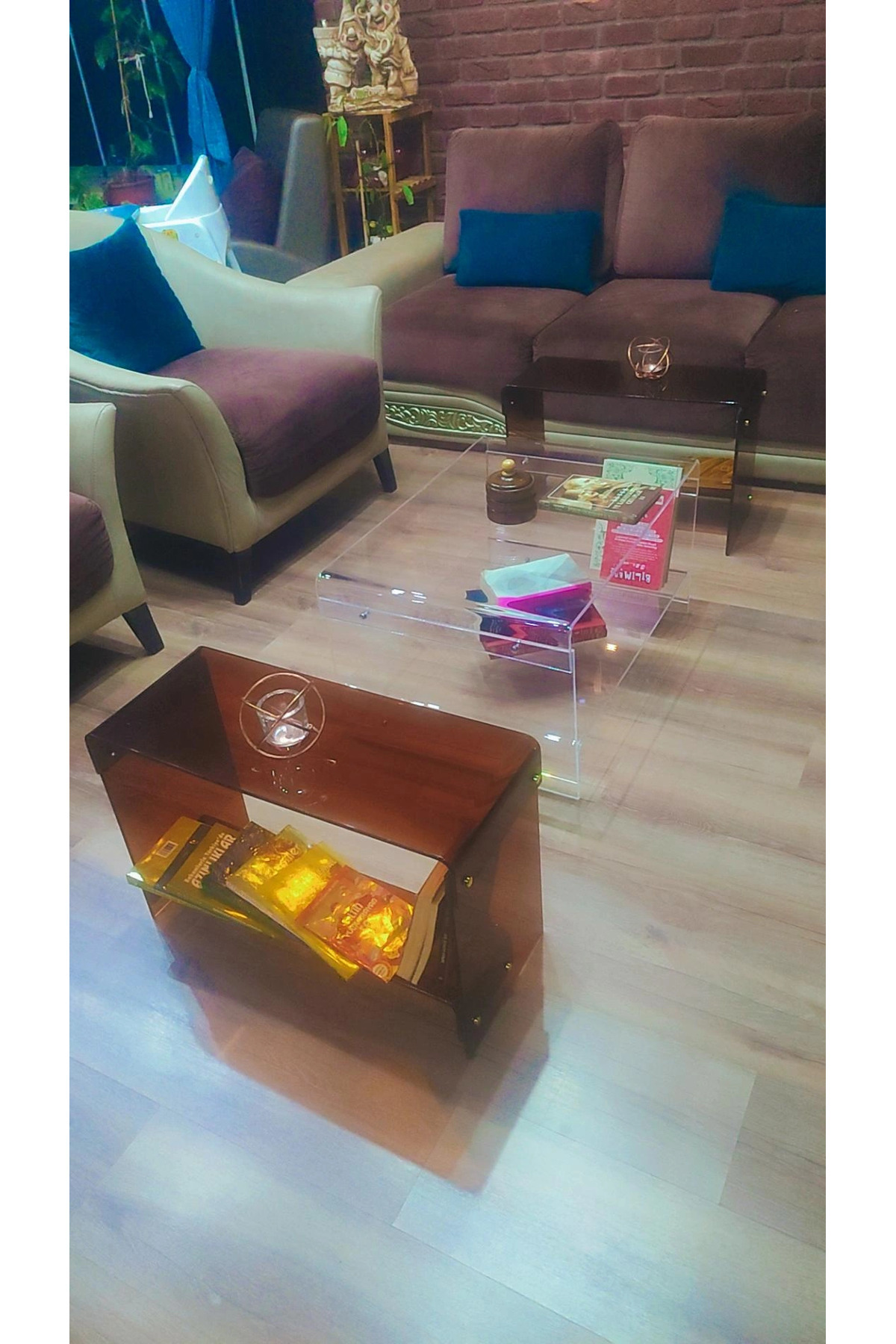 8 mm şeffaf pleksi ve kahverengi pleksi kombineli orta sehpa 8 mm şeffaf pleksi ve kahverengi pleksi kombineli orta sehpa 91 تک سایز