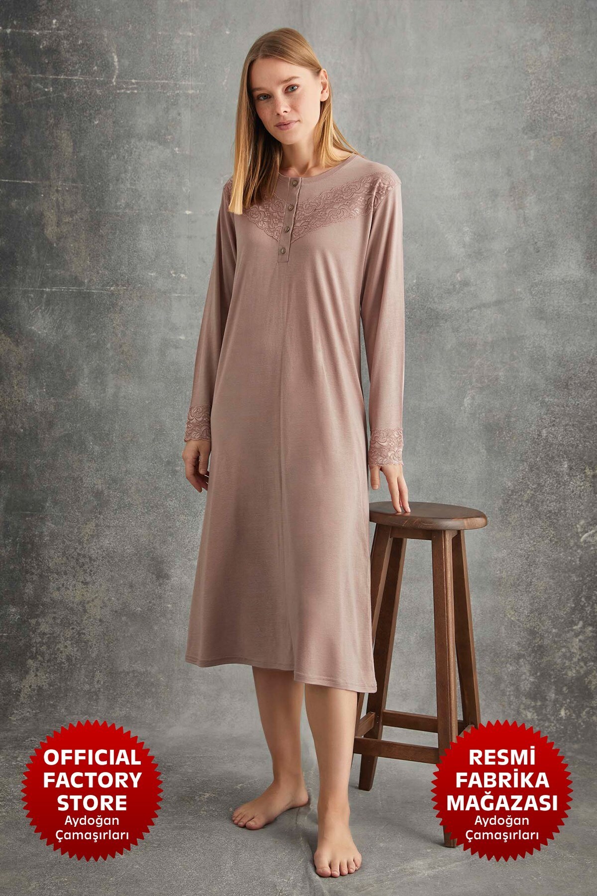 Kadın Dantelli Gül Kurusu Gecelik Uzun Kollu %95 Pamuklu B1-3 - 6044 - Aydogan ® Kadın Dantelli Gül Kurusu Gecelik Uzun Kollu %95 Pamuklu B1-3 - 6044 - Aydogan ® AYDCMR.6044 2XL