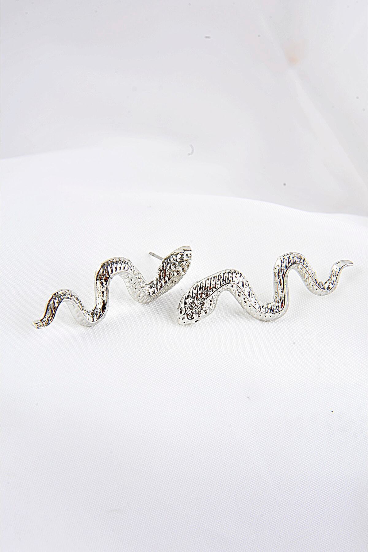 Yılan Tasarımlı Gümüş Kaplamalı Kadın Vidalı Küpe Yılan Tasarımlı Gümüş Kaplamalı Kadın Vidalı Küpe TWkp02,03,5382a تک سایز