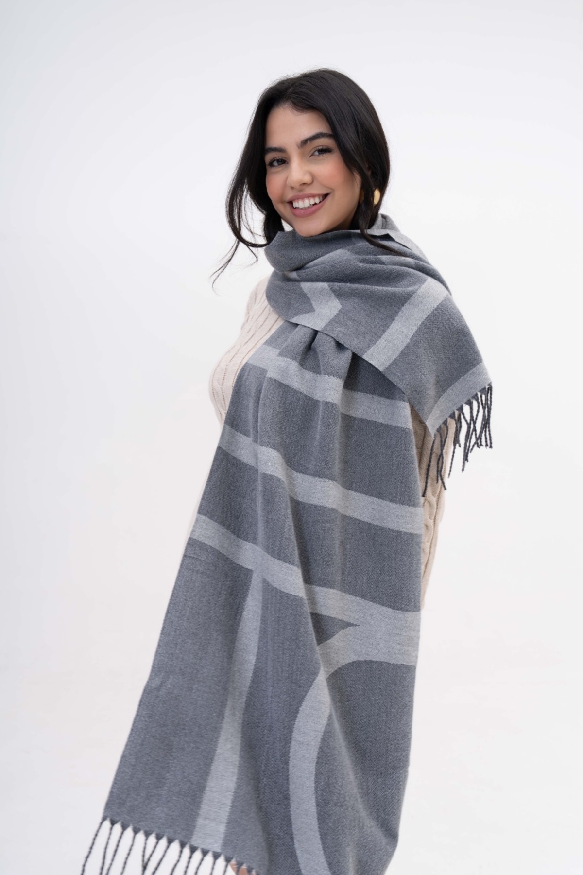 Çizgi Desenli Kaşmir %100 Viscone Gri Şal Çizgi Desenli Kaşmir %100 Viscone Gri Şal 4020 تک سایز