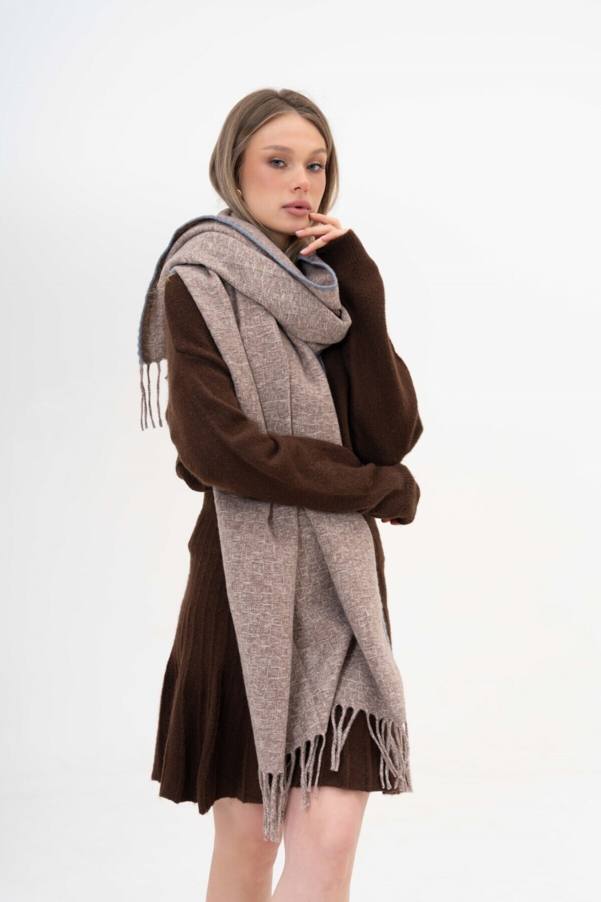 Kare Desenli Püsküllü Kaşmir %100 Viscose Pudra Gri Şal Kare Desenli Püsküllü Kaşmir %100 Viscose Pudra Gri Şal 4020 تک سایز