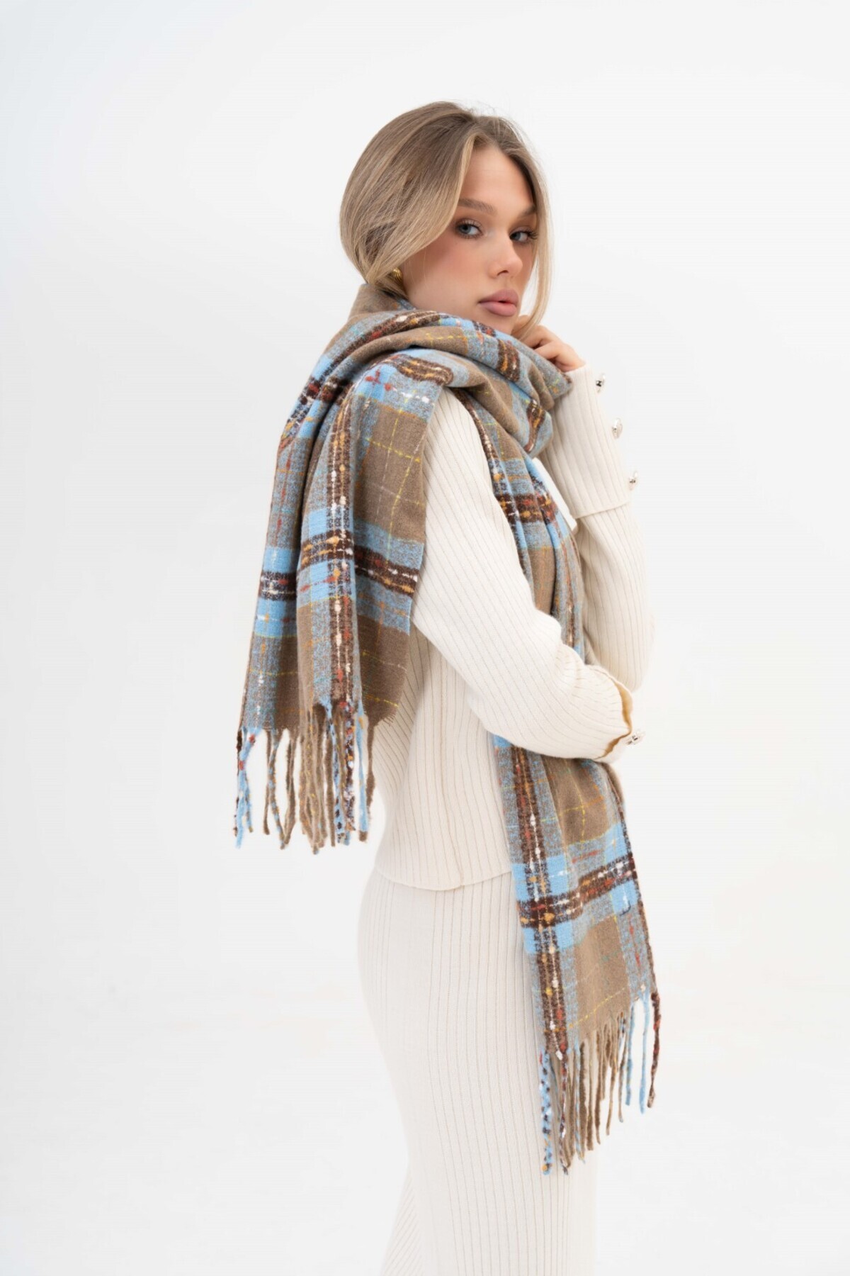 Ekose Desenli Püsküllü Kaşmir %100 Viscose Vizon Mavi Çizgili Şal Ekose Desenli Püsküllü Kaşmir %100 Viscose Vizon Mavi Çizgili Şal 4020 تک سایز