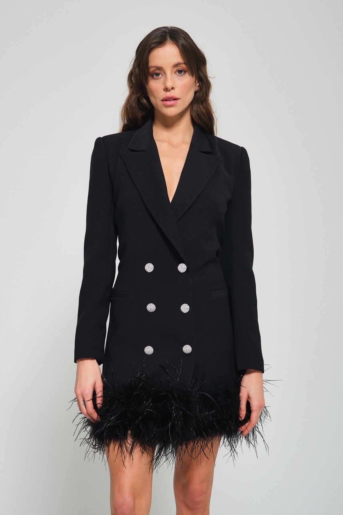 Siyah boğazlı vatkalı kuşak detaylı mini elbise Siyah boğazlı vatkalı kuşak detaylı mini elbise TR1018 XL