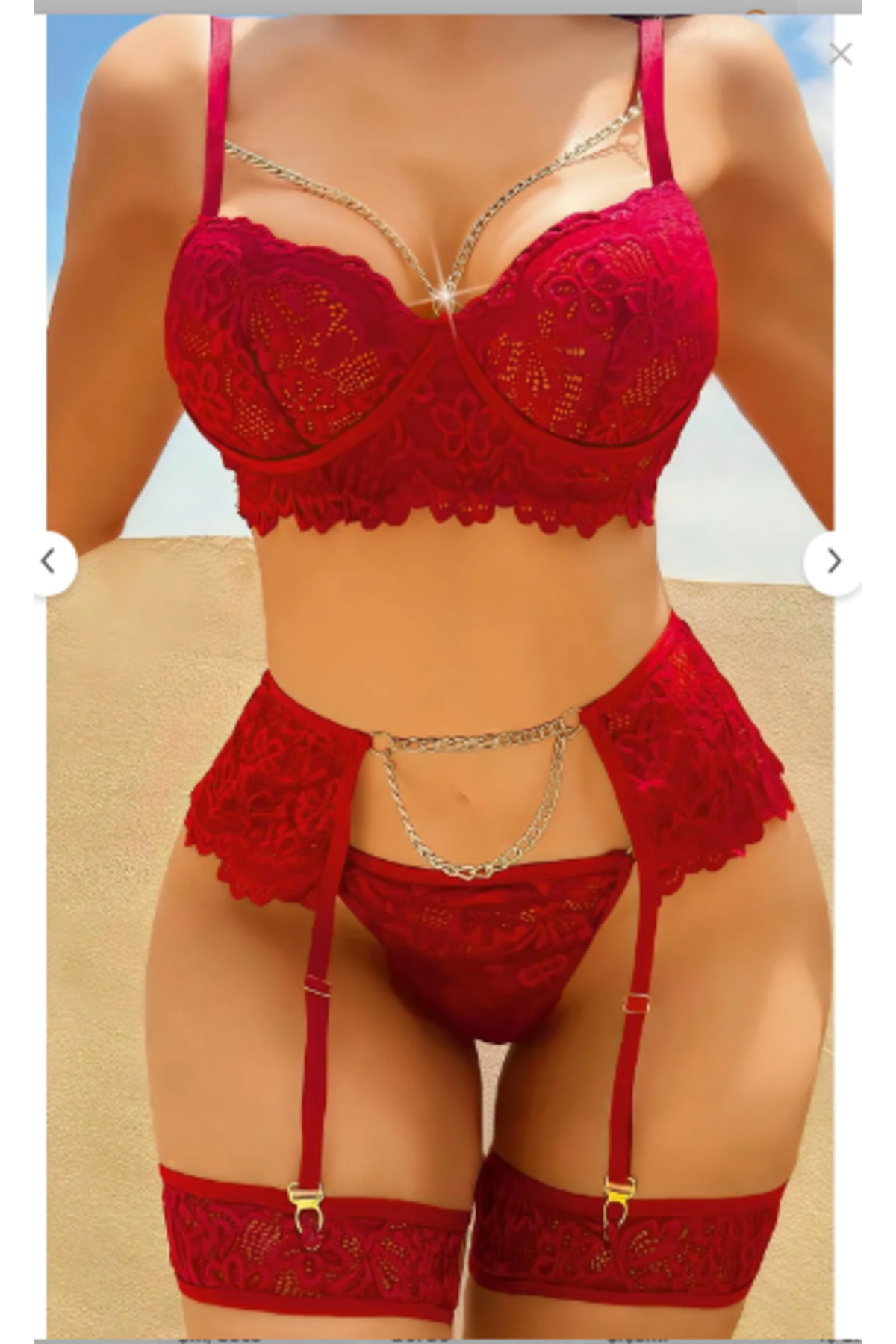 Ekru Göğüs Balenli Dantelli Zincir Detaylı Jartiyer Takım Ekru Göğüs Balenli Dantelli Zincir Detaylı Jartiyer Takım PS0030 XL