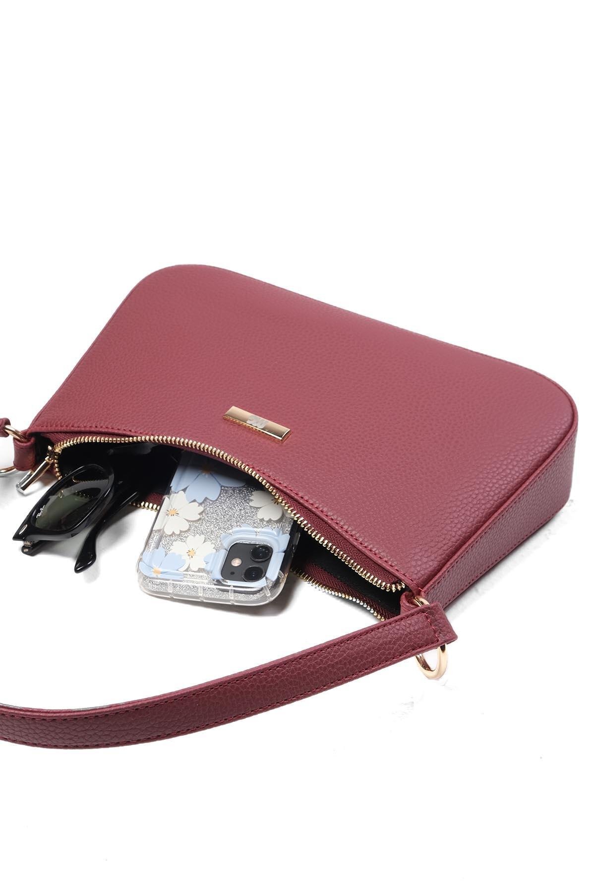 Bordo Renk Kadın El Ve Omuz Çantası Bordo Renk Kadın El Ve Omuz Çantası C0077C تک سایز