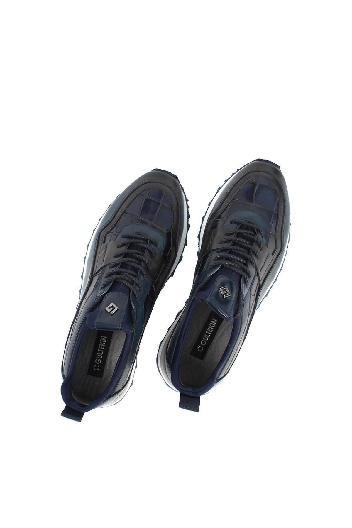 Erkek Lacivert Kroko Bağcıklı Kalın Tabanlı Deri Sneaker Erkek Lacivert Kroko Bağcıklı Kalın Tabanlı Deri Sneaker 406 4428-19587 45