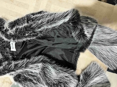 Kapüşonlu Suni Kürk Ceket SİYAH GRİ LYL0005 Kapüşonlu Suni Kürk Ceket SİYAH GRİ LYL0005 40