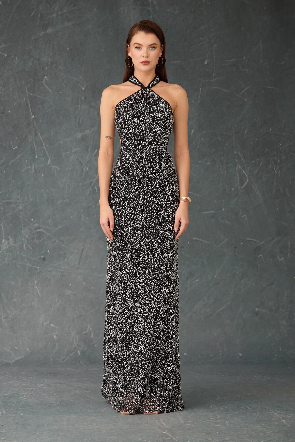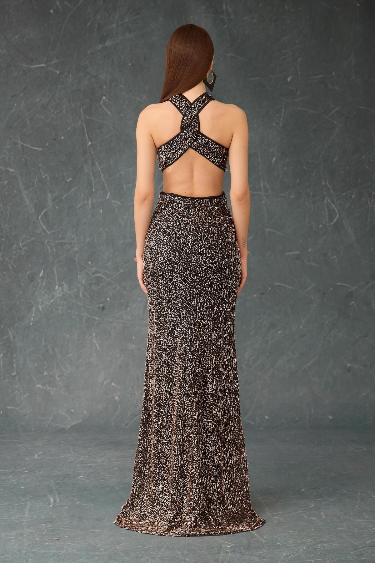 Siyah Gold Sırt Dekolteli Payetli Abiye Elbise Siyah Gold Sırt Dekolteli Payetli Abiye Elbise 58508 42