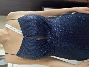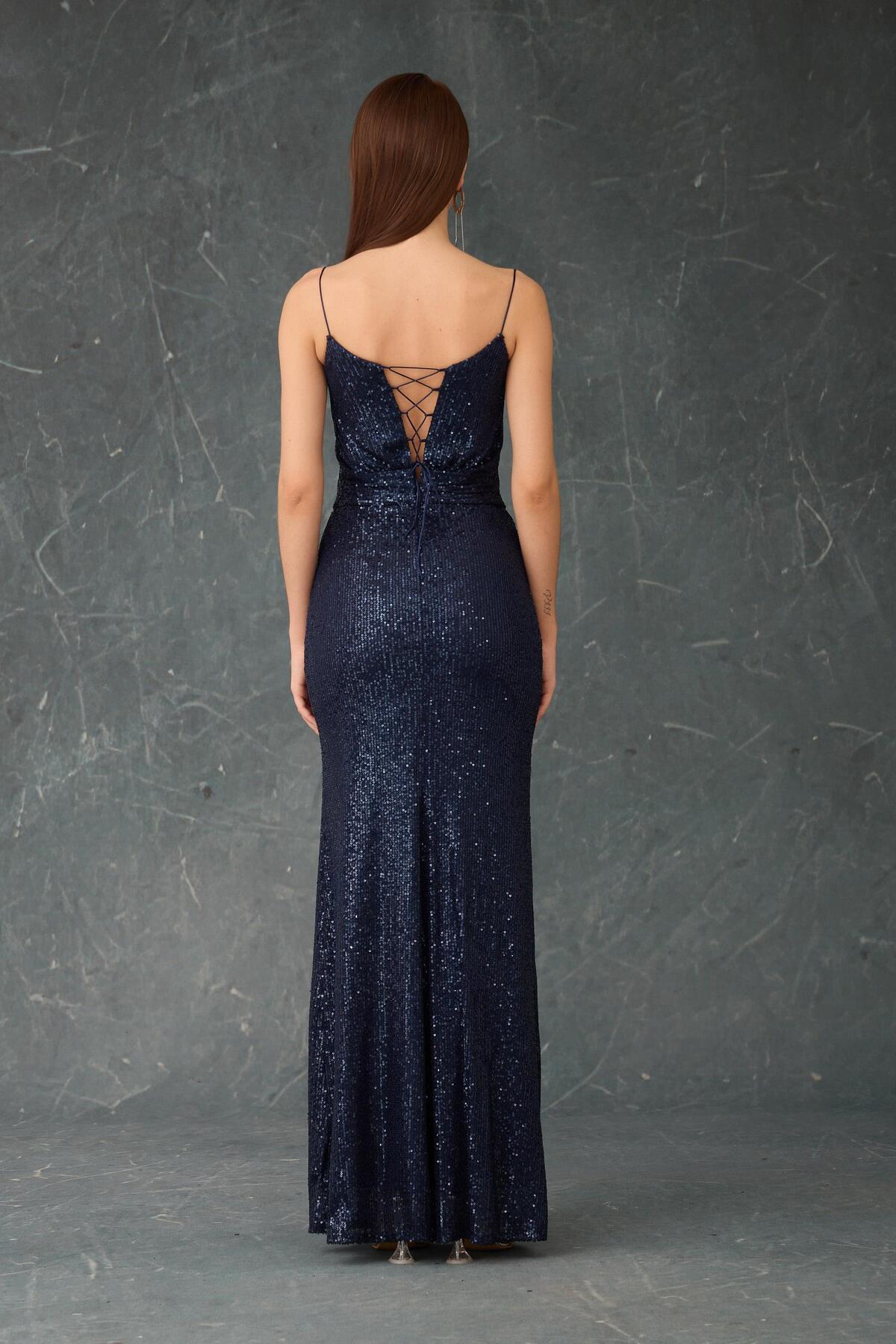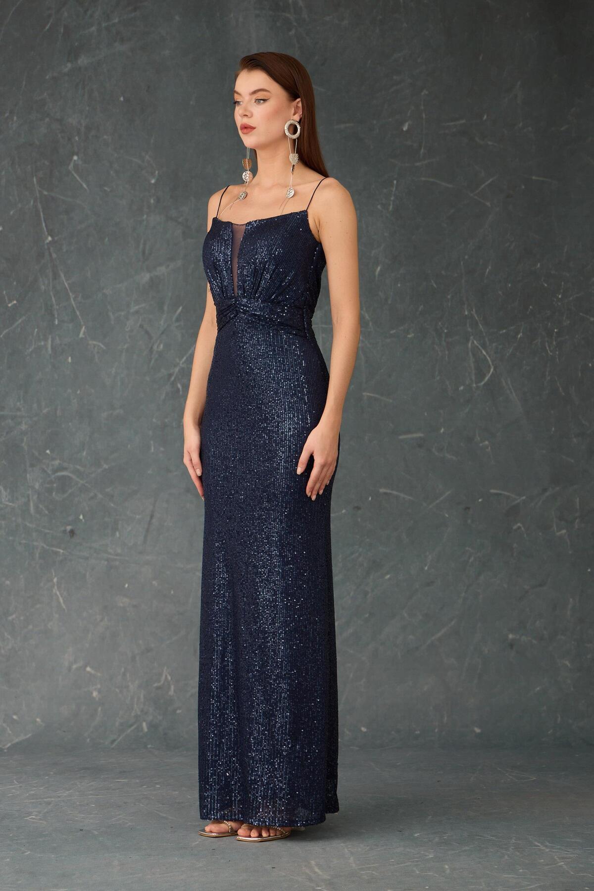 Lacivert Askılı Payetli Abiye Elbise Lacivert Askılı Payetli Abiye Elbise 58498 42