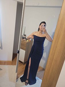 Lacivert Straplez Yırtmaçlı Şifon Abiye Elbise Lacivert Straplez Yırtmaçlı Şifon Abiye Elbise 58482 44