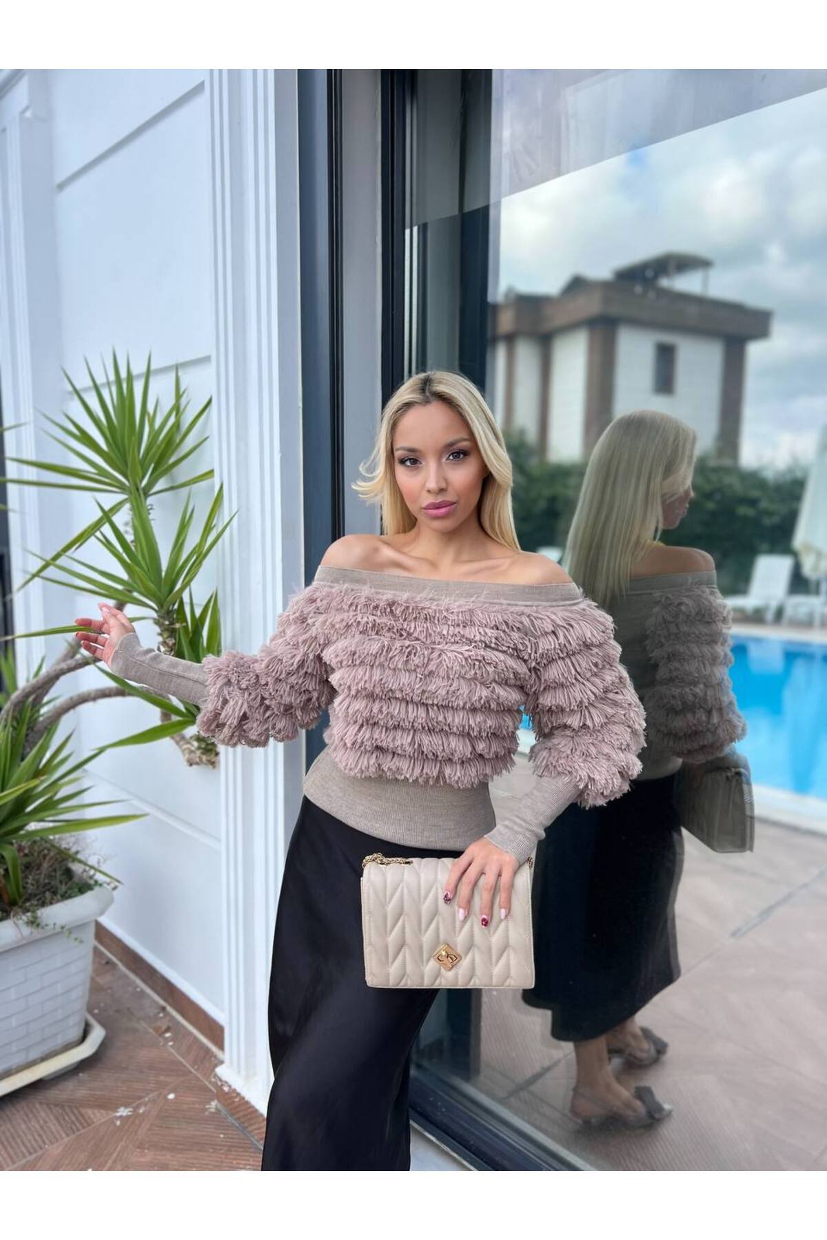 Kadın Kol Ve Yaka Püsküllü Madonna Kazak Kadın Kol Ve Yaka Püsküllü Madonna Kazak 24K003519 Standart