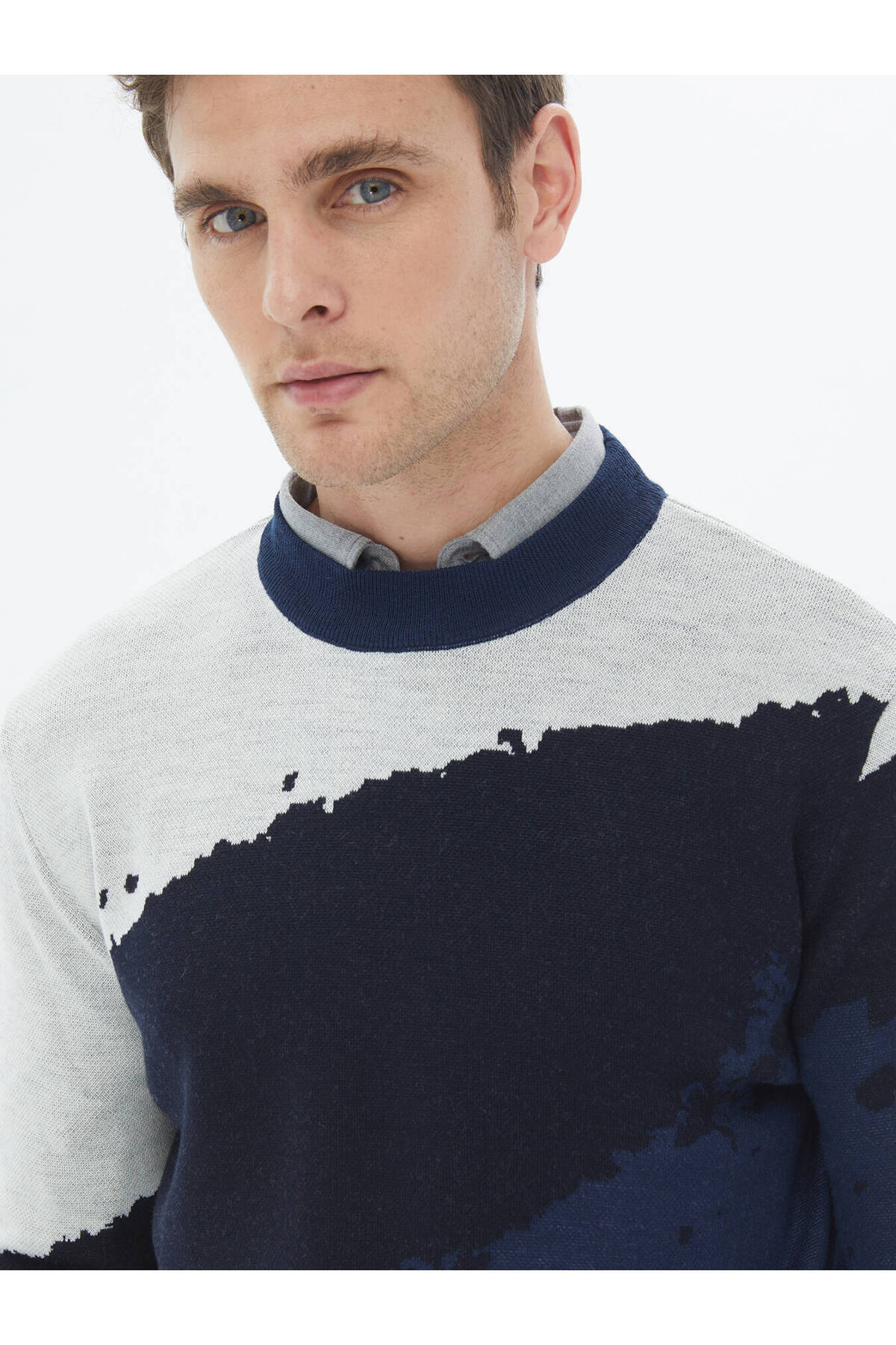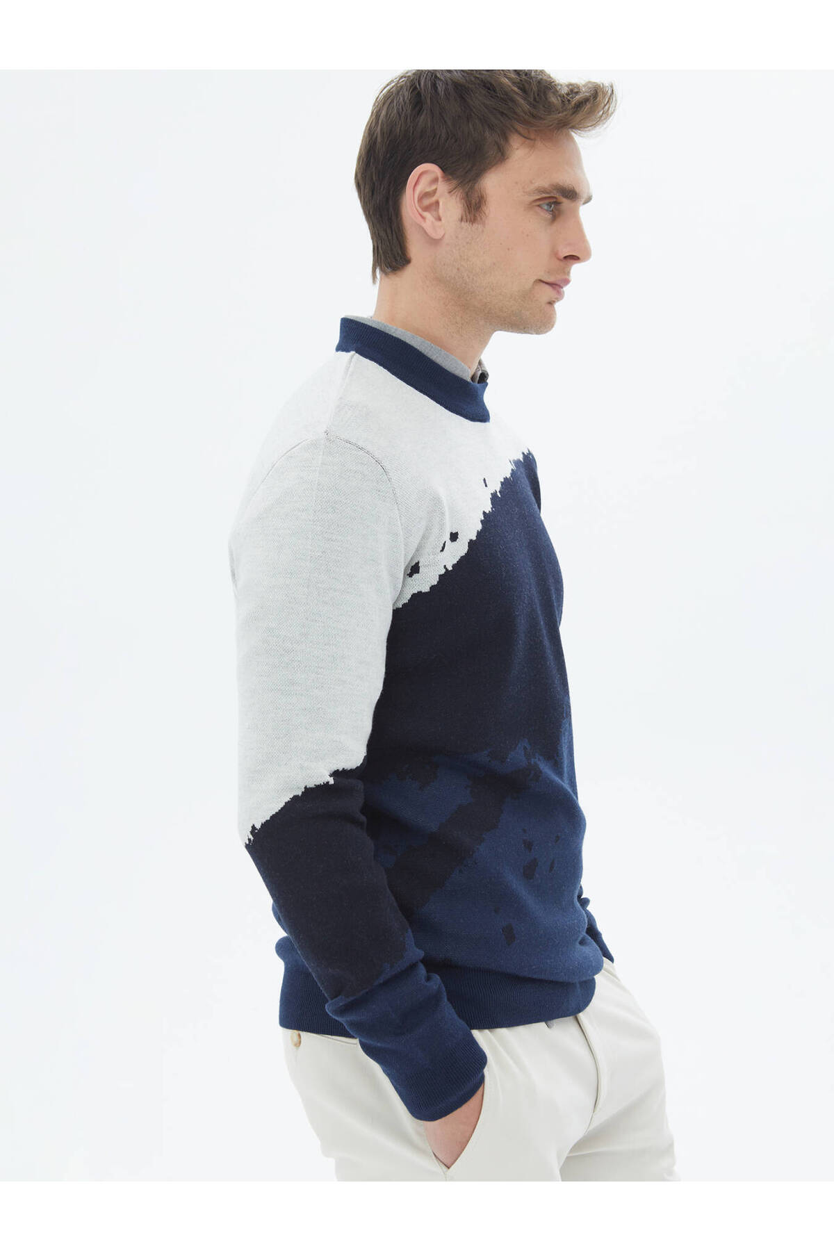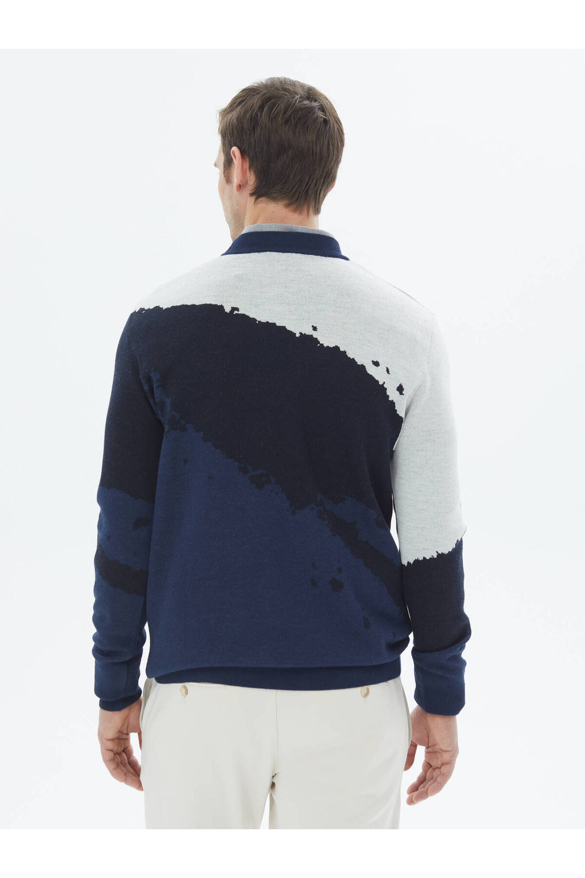 Lacivert Yarım Balıkçı Yaka Desenli Yün Karışımlı Triko Kazak Lacivert Yarım Balıkçı Yaka Desenli Yün Karışımlı Triko Kazak 50075 3XL