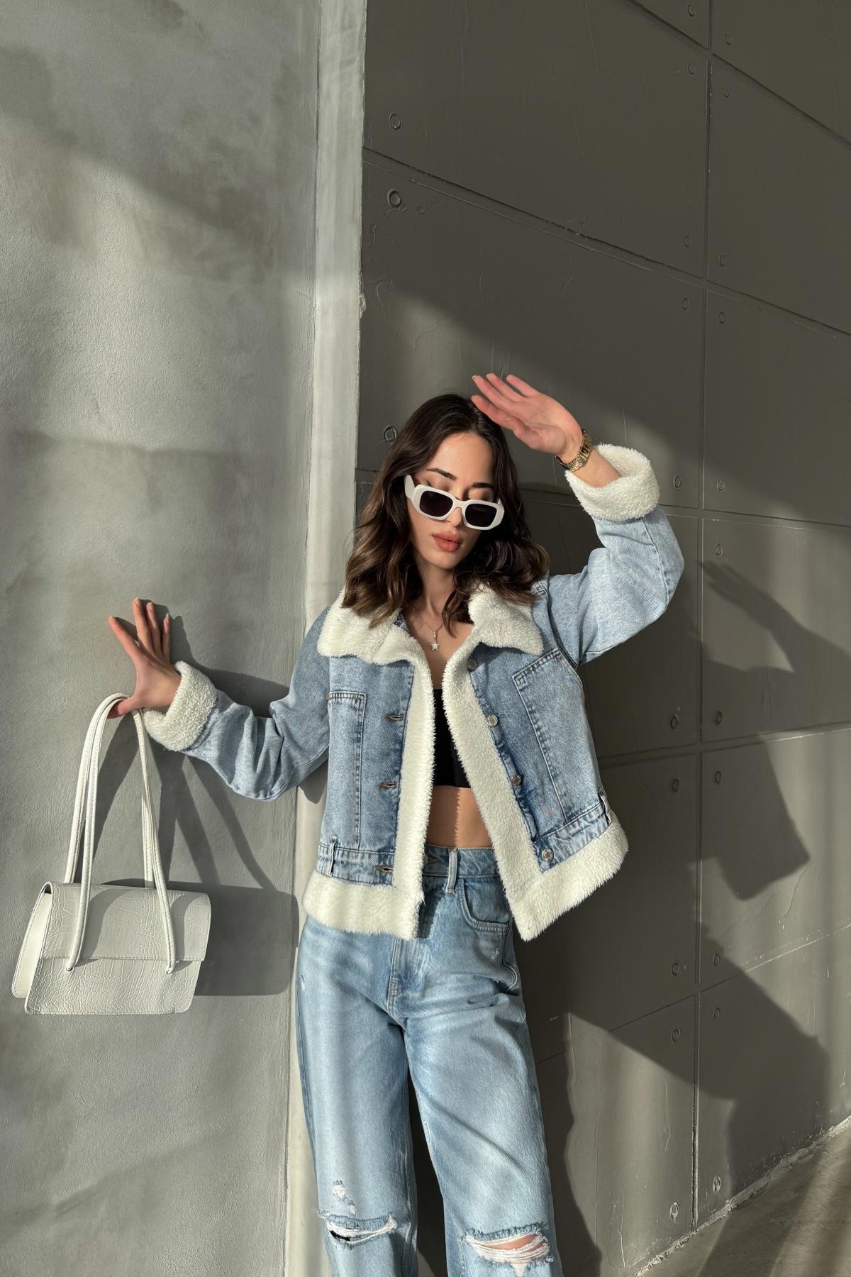 Kadın Jean Trend Kışlık Içi Kürklü Kot Ceket Mavi Kadın Jean Trend Kışlık Içi Kürklü Kot Ceket Mavi K0205-20 XL