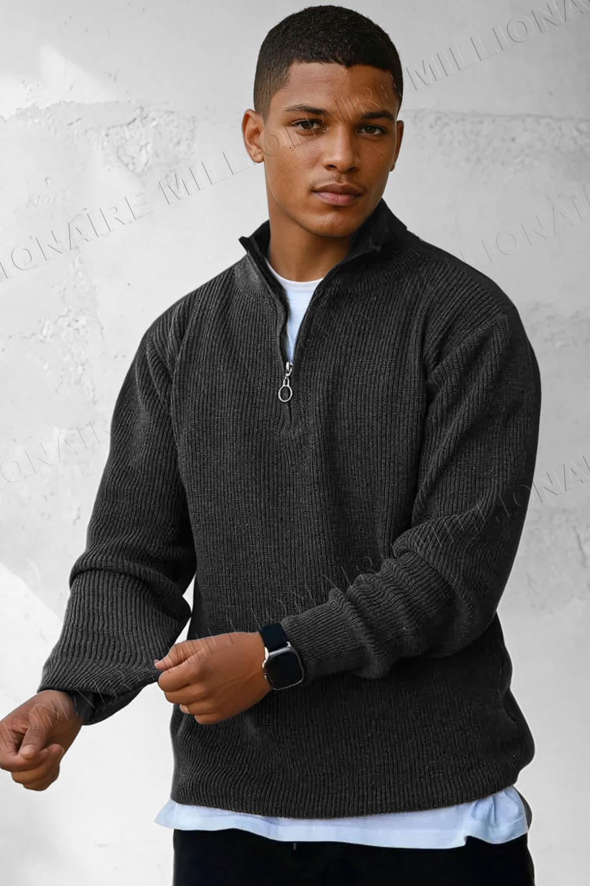 Erkek Nefti Fermuarlı Balıkçı Yaka Kışlık Triko Kazak Erkek Nefti Fermuarlı Balıkçı Yaka Kışlık Triko Kazak TE1002 2XL
