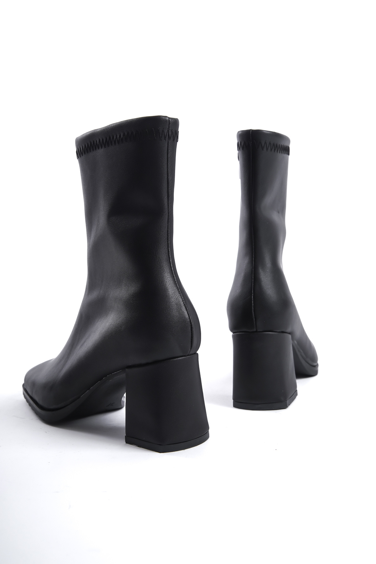 Siyah Cilt Kadın Cilt Orta Boy Küt Burun Kalın Topuklu Bot BG1001-116-0010 Siyah Cilt Kadın Cilt Orta Boy Küt Burun Kalın Topuklu Bot BG1001-116-0010 MD1001-116-0010 40