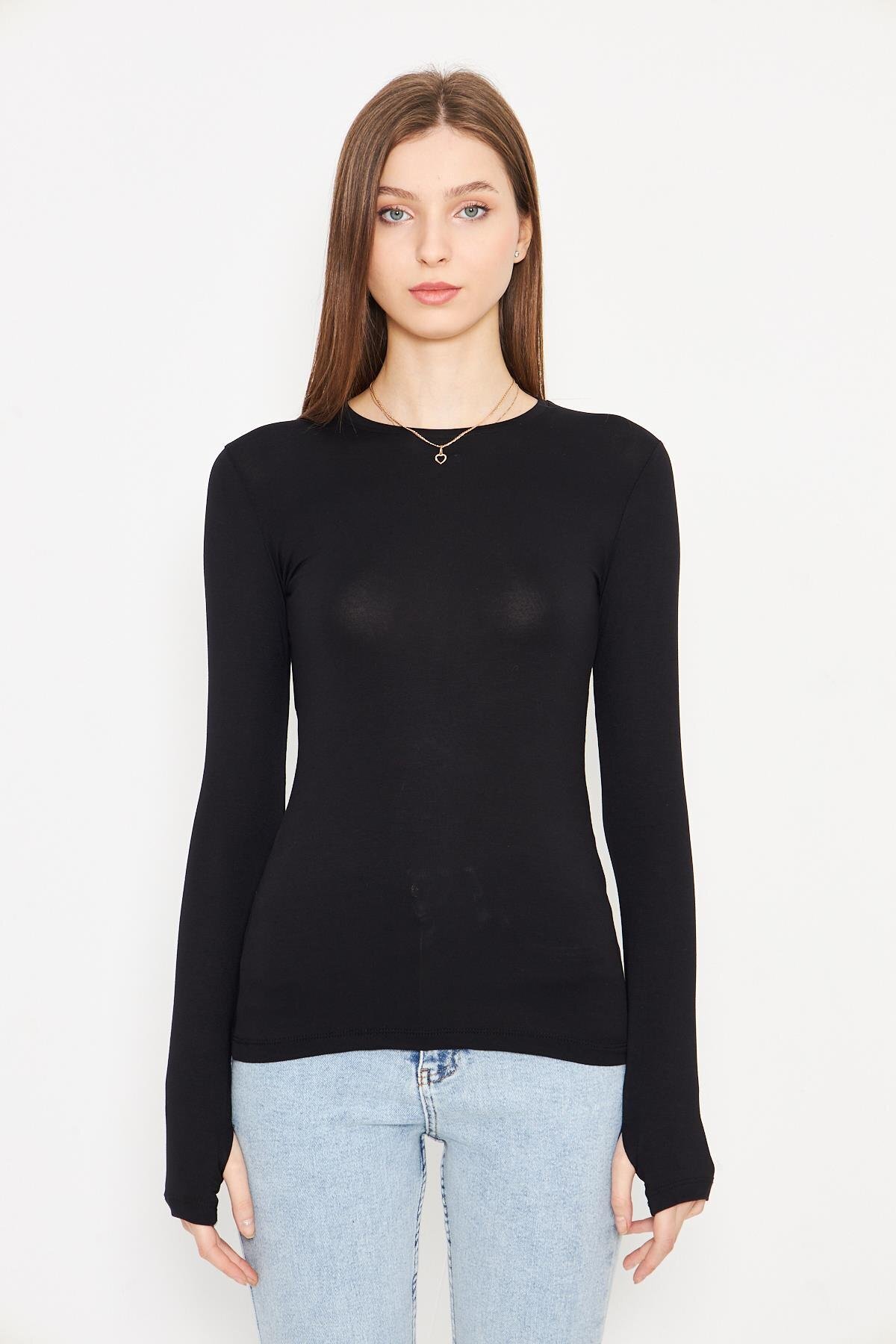 Kadın Siyah Parmak Detaylı Bisiklet Yaka Likralı Body 199 Kadın Siyah Parmak Detaylı Bisiklet Yaka Likralı Body 199 تک سایز
