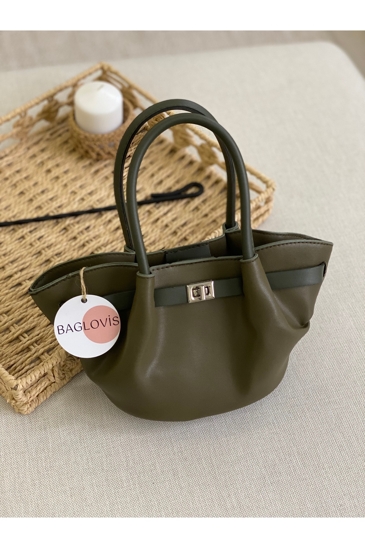 ÖNÜ KİLİT DETAYLI MİNİ BOY HAKİ KADIN OMUZ ÇANTASI ÖNÜ KİLİT DETAYLI MİNİ BOY HAKİ KADIN OMUZ ÇANTASI RDİA تک سایز