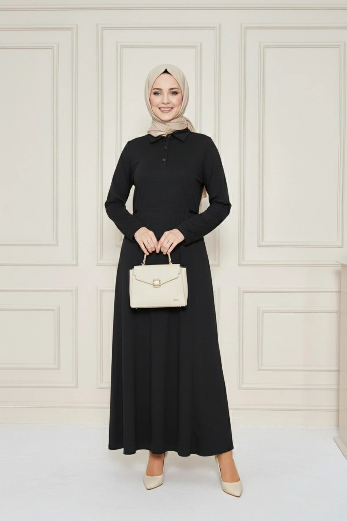Beli Kuşaklı Tesettür Elbise 100MD-10528 Siyah Beli Kuşaklı Tesettür Elbise 100MD-10528 Siyah 553528-121M00810528 54-56